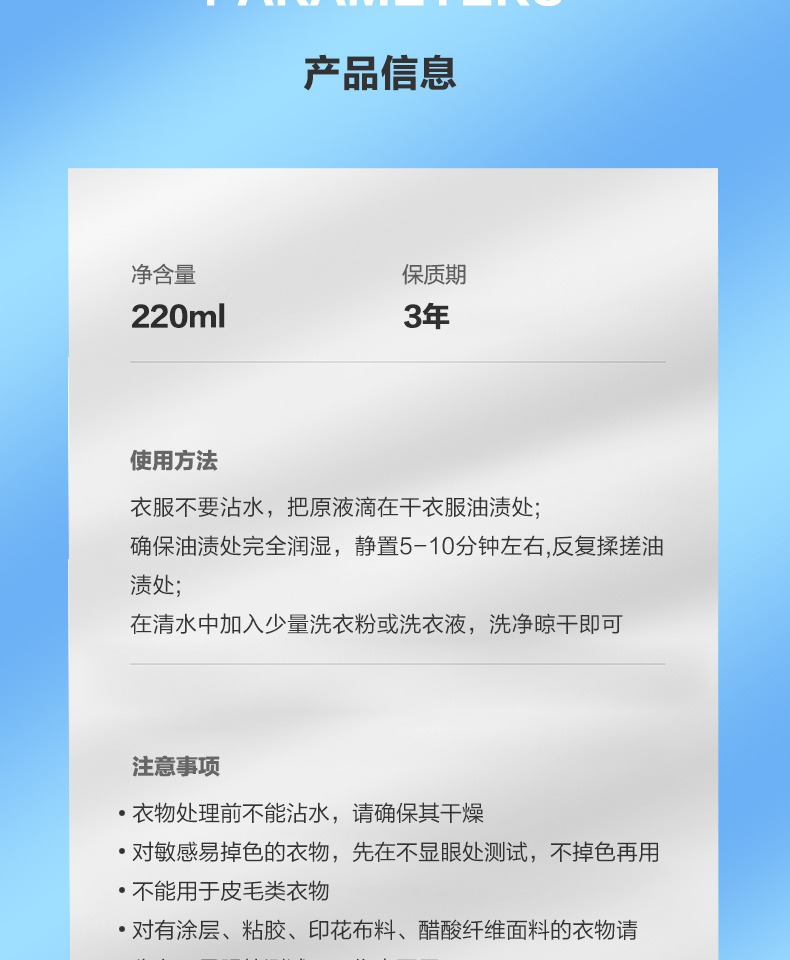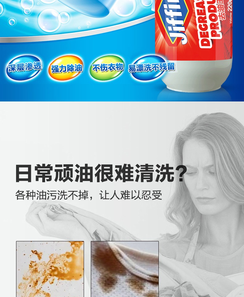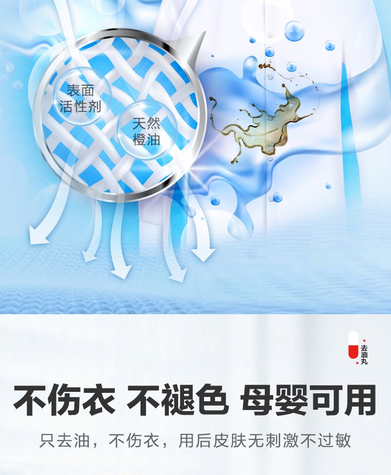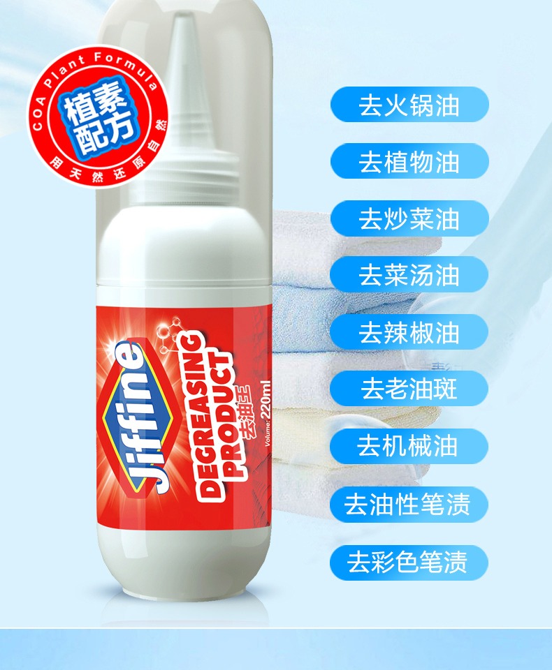 美国全新COA植素配方,一滴去顽油,安全不伤衣,深层渗透,易漂洗不残留,用它!跟油污说拜拜~