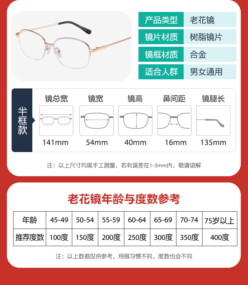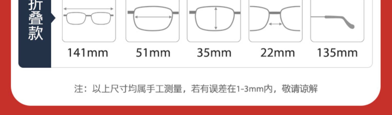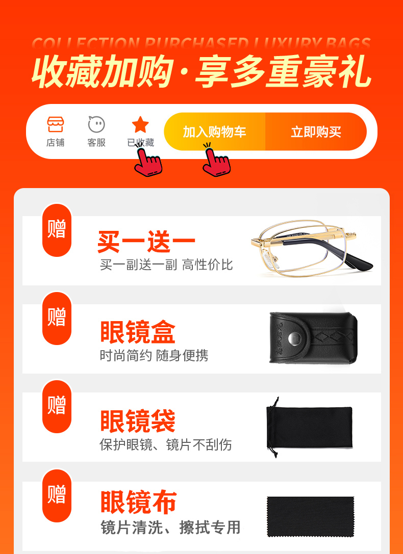 超值价!送长辈优先选择!时尚老花镜,多度数可选,防辐射,防蓝光,防紫外线,可折叠,耐磨轻巧,佩戴舒适,不夹脸不压鼻,男女通用,呵护老人健康,送爸妈送长辈很贴心!