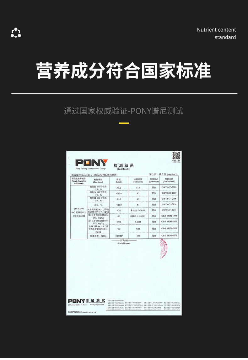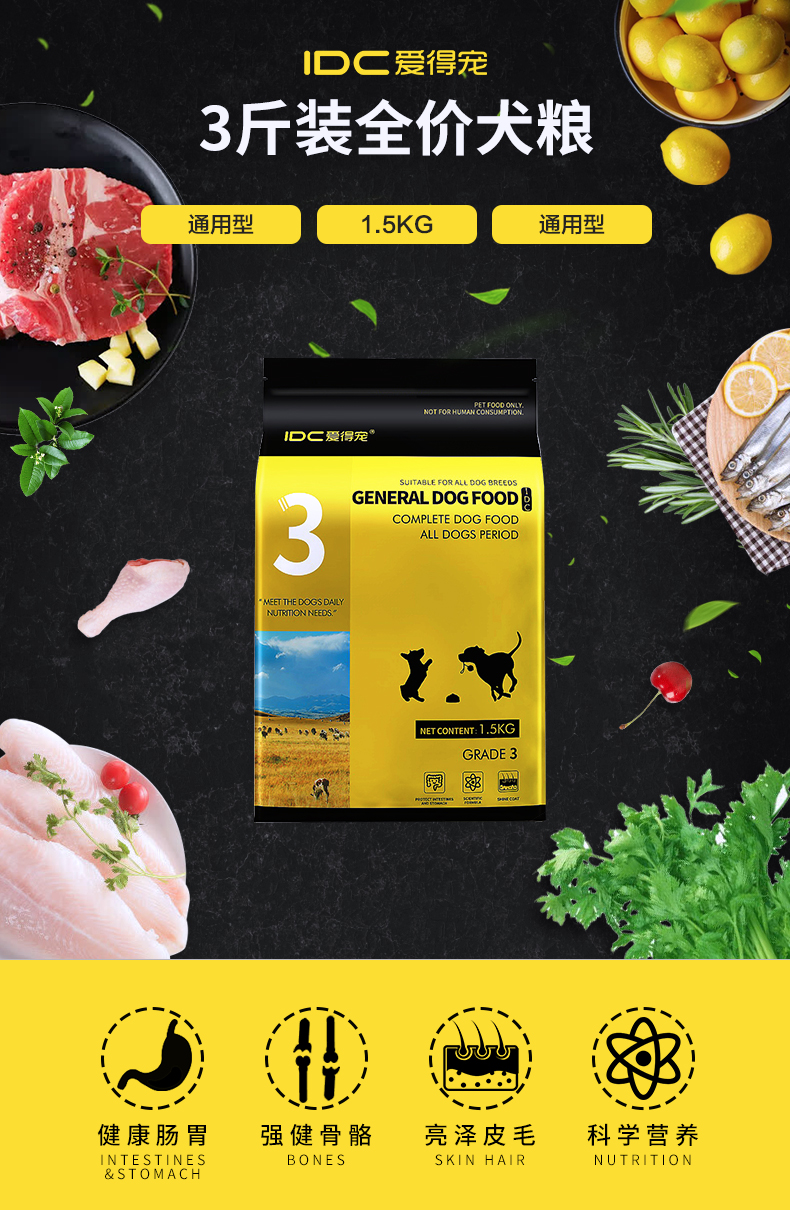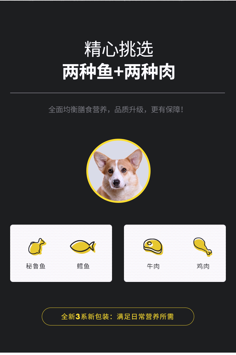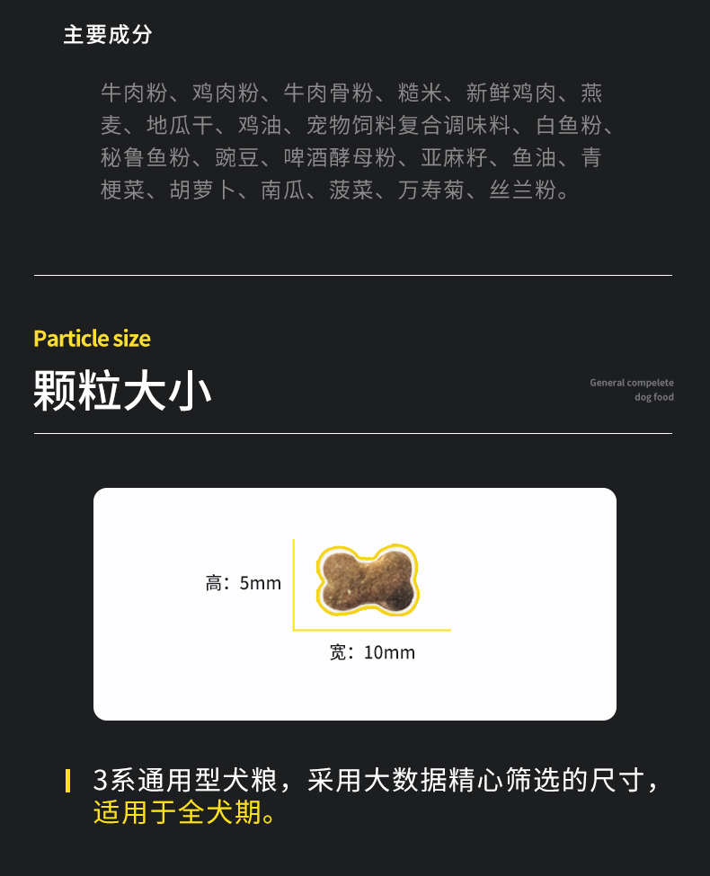 均衡营养配比,丰富的易消化蛋白,有肉粒不挑嘴,壮骨美毛,高蛋低脂,酥松可口。美毛健体,易于消化,营养丰富,让狗狗的健康成长。