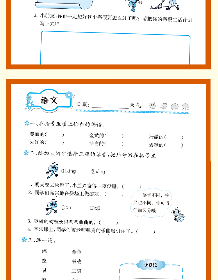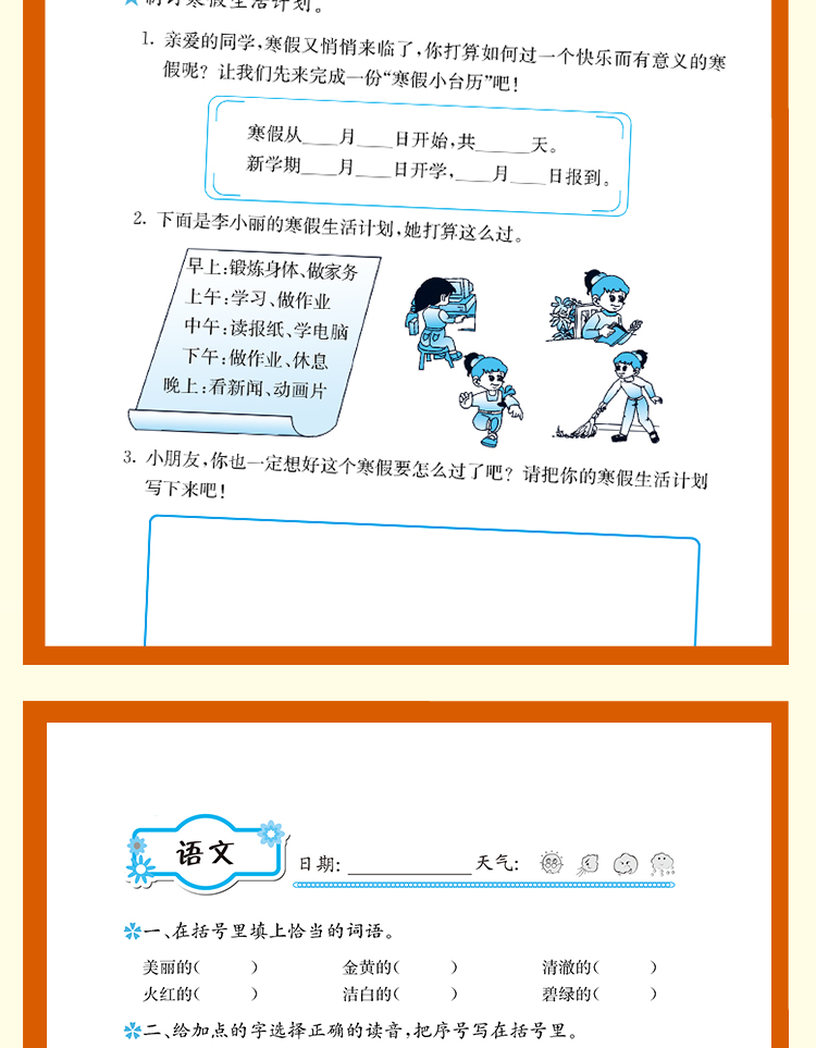 【人教版】小学二年级寒假作业语数2本