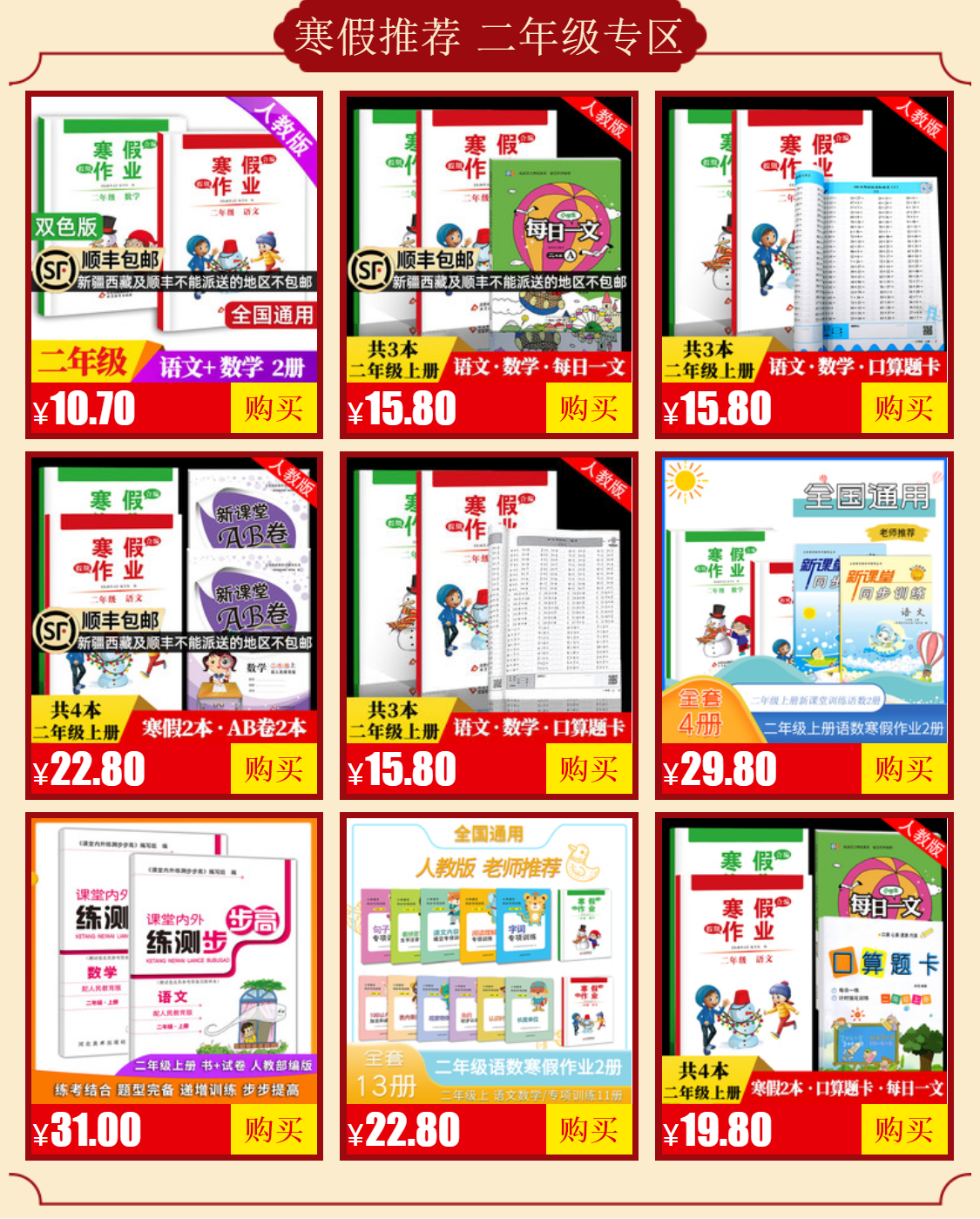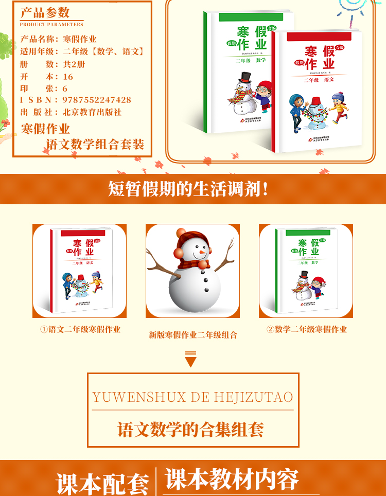 班主任推荐,同步人教版寒假作业,二年级上,语文+数学2本,全国通用,全面解析,详细讲解,打好基础,让孩子在寒假期间拉开距离,赢在起跑线上!书店一套最少30多,今天活动秒杀5.7,手慢无~