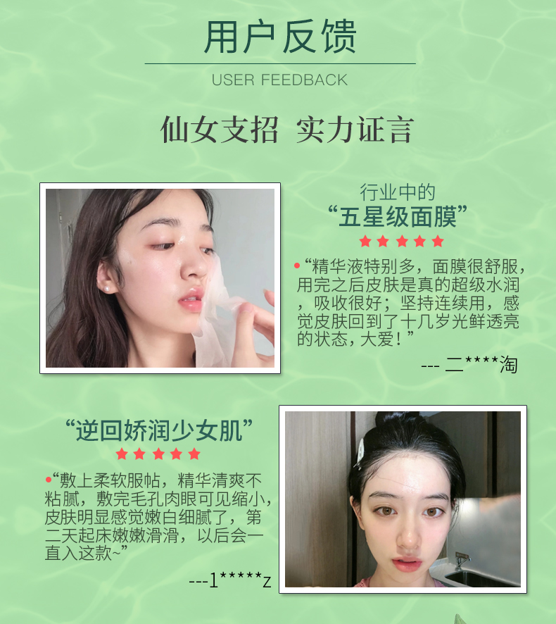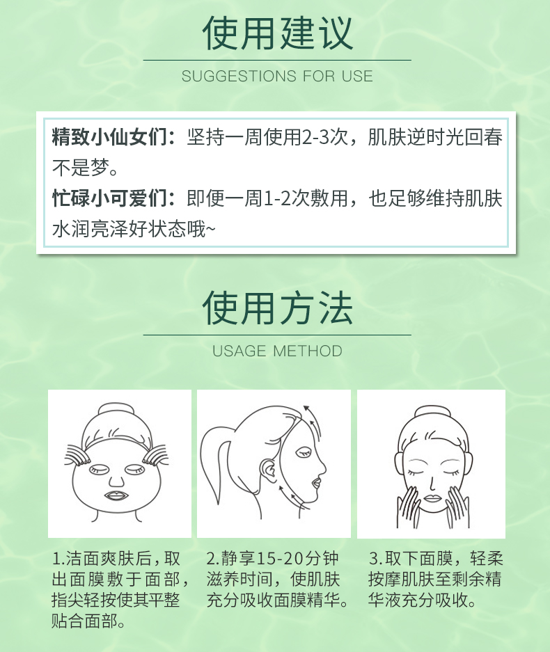 日本进口蚕丝膜布,轻薄易吸收,十分贴肌肤。满满精华,倍润修护,养出粉嫩水光肌,植物精粹!樱花,玫瑰,植物多效酵素面膜!一年仅一次大促~速度抢