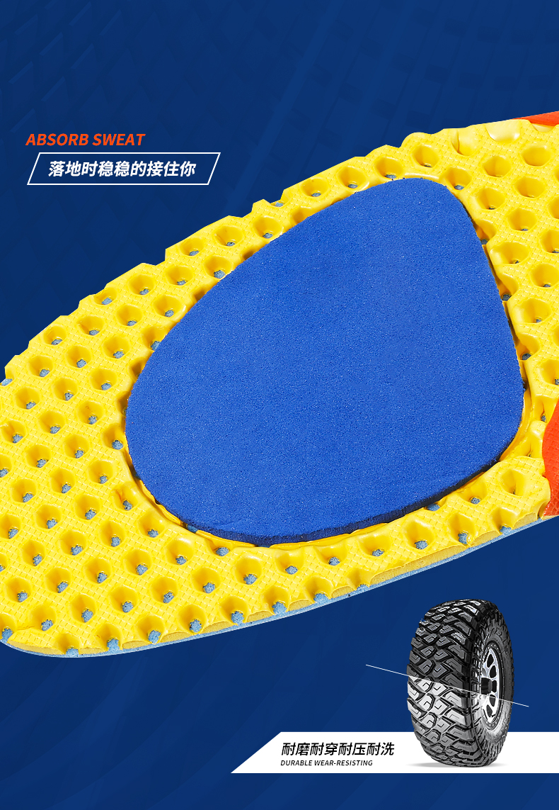 【3双】升级款运动鞋垫,蜂窝减震,透气吸汗,柔软舒适,U型跟杯设计,有效保护双脚,背面网口设计更透气,让脚步持续干爽!足弓支撑,舒适又柔软能随意剪裁,超级耐用,买一双走路不怕累!