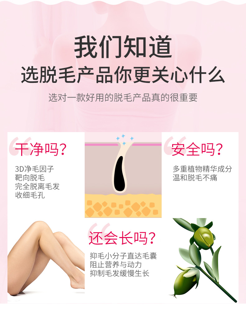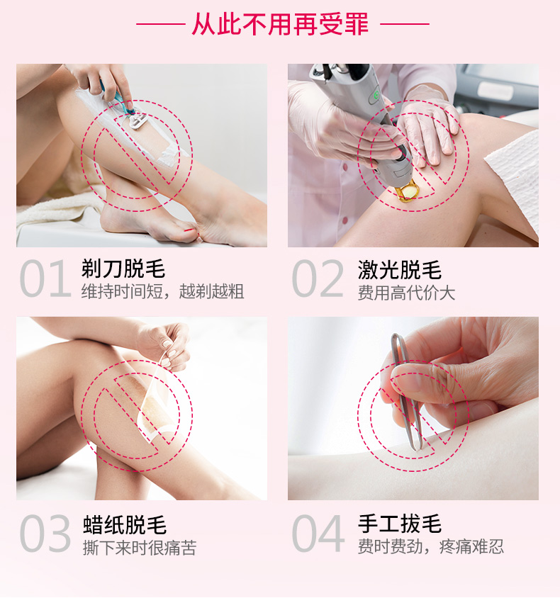快速脱毛,不留小黑点,使用方便,自己即可轻松脱毛,温和不刺激,水润嫩滑,透亮肌肤,轻松脱毛,全身多处适用,脱出自信与美丽