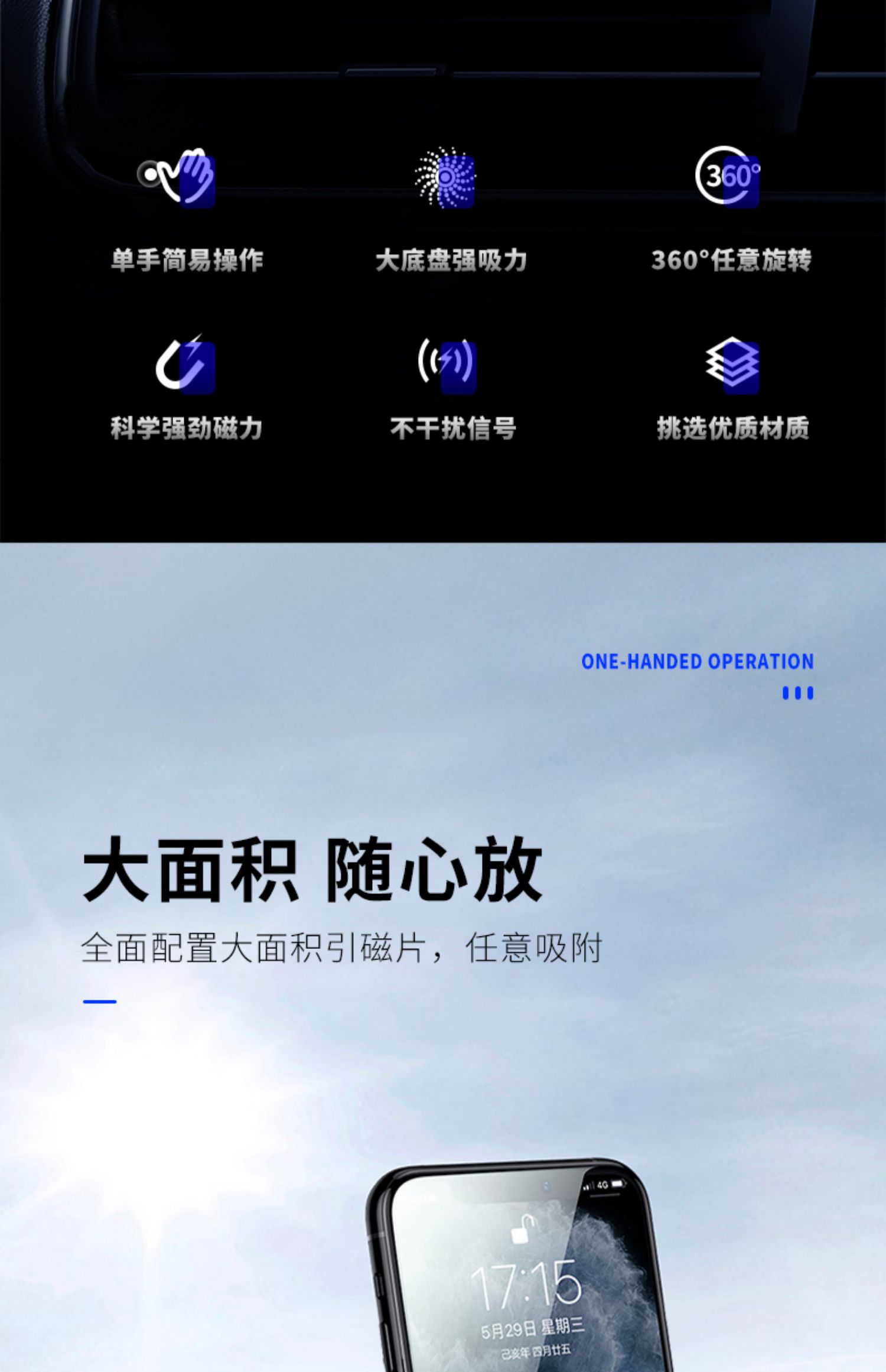 【360立体旋转,无噪音】防震车载手机支架,无异响,可调节高低,磁吸式稳如泰山,大面积,随心放!万向灵动,多变角度~手机导航的不二伴侣!【赠运费险】