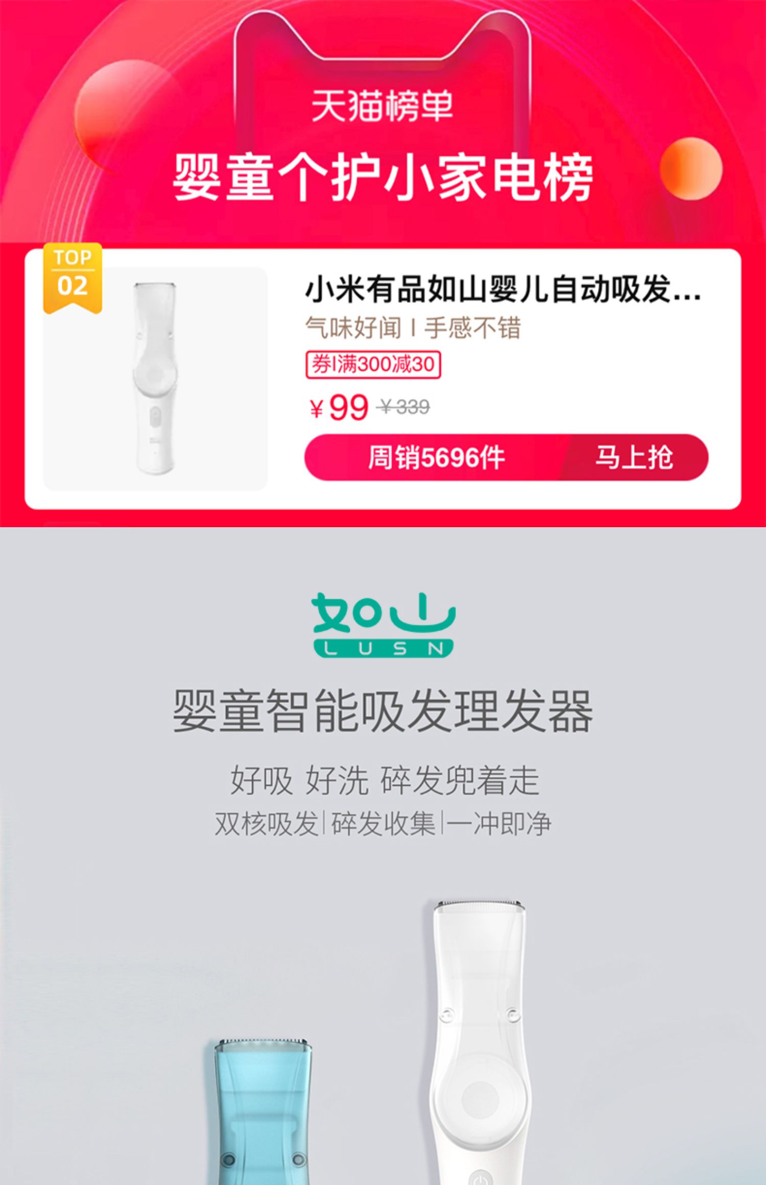 【小米有品】好吸,好洗,黑科技,静音防水!超方便!操作简单,安全陶瓷刀头,不会误伤到宝宝,防水性强,全身可水洗,易清洁!【赠运费险】