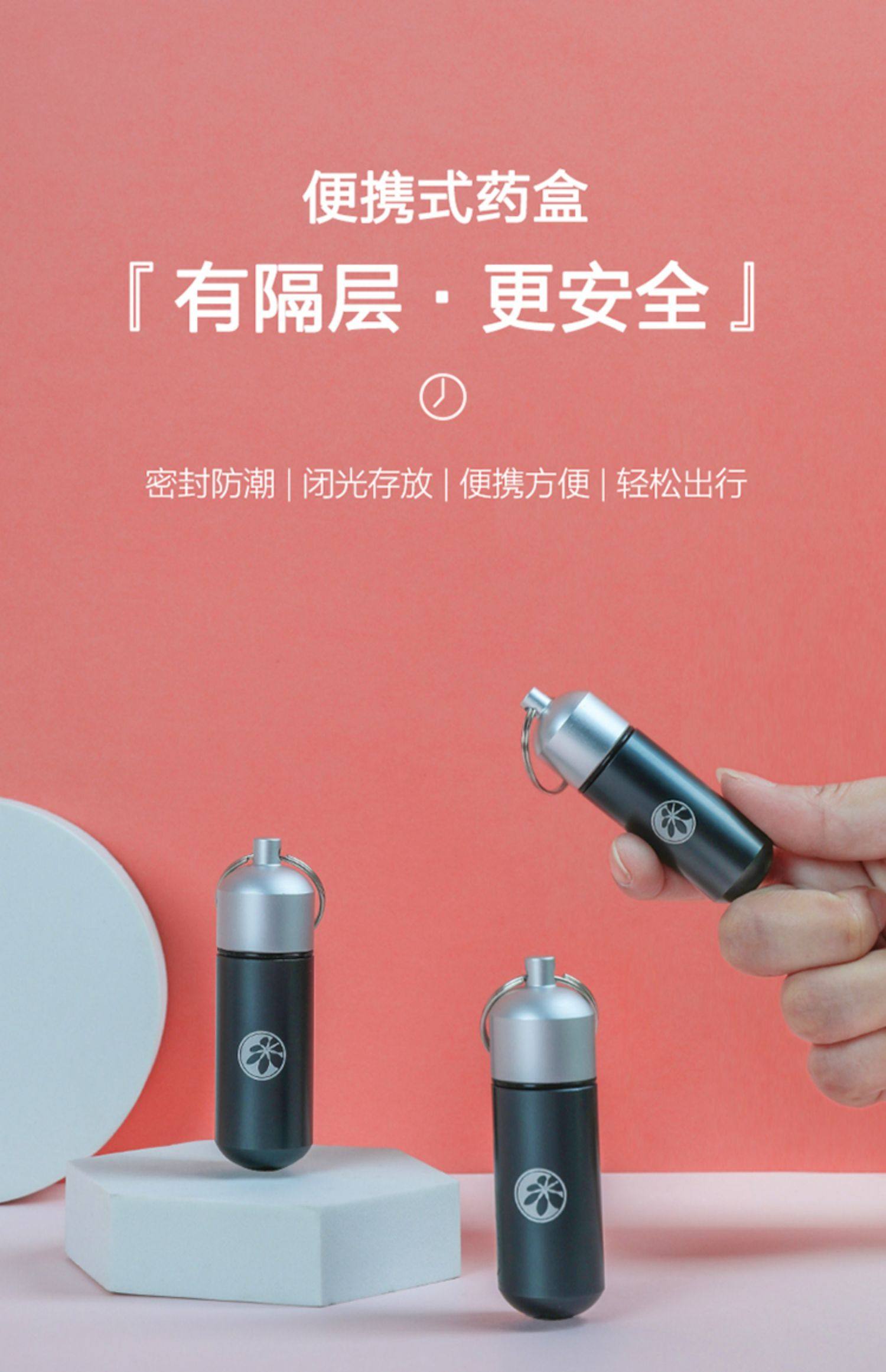 随身携带每日药盒,防潮防尘,小巧玲珑,安全环保,不添加化学物质,耐摔密封防潮安全,握在手心的药盒,爱不释手的精致。