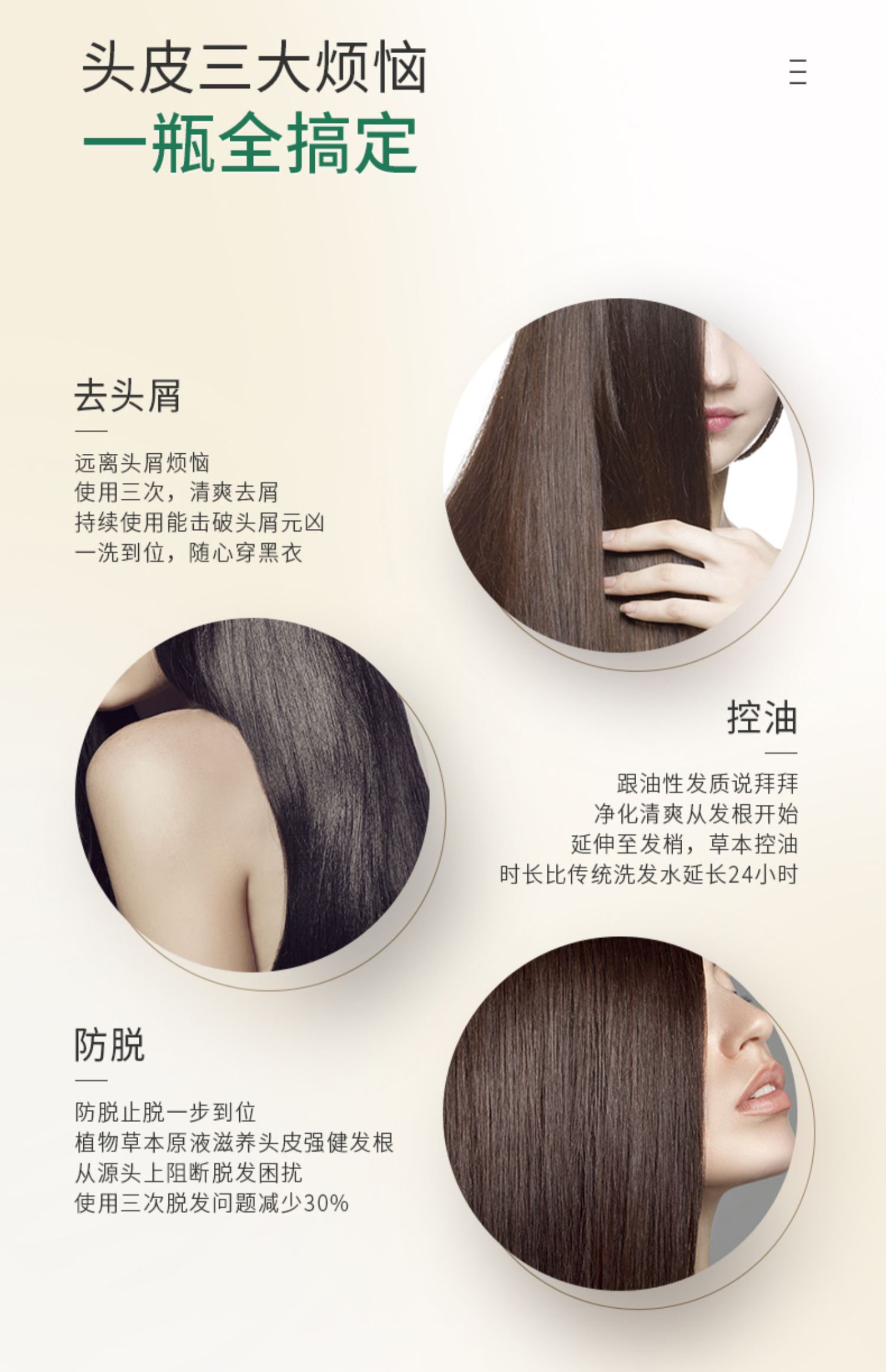 控油、去屑、止痒、防脱!!彻底远离头屑烦恼,防脱止脱一步到位,跟油性发质说拜拜!四大功效解决一切发质烦恼~