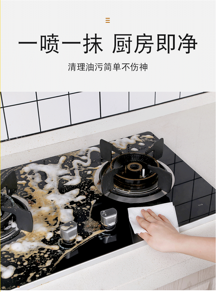 【免拆洗,自动分解去污,一喷一抹,厨房即净!】家用厨房多功能油污泡沫清洁剂,家庭清洁百宝箱,强力型去油污,3秒见效,省时省力一招解决,健康生活从厨房开始~