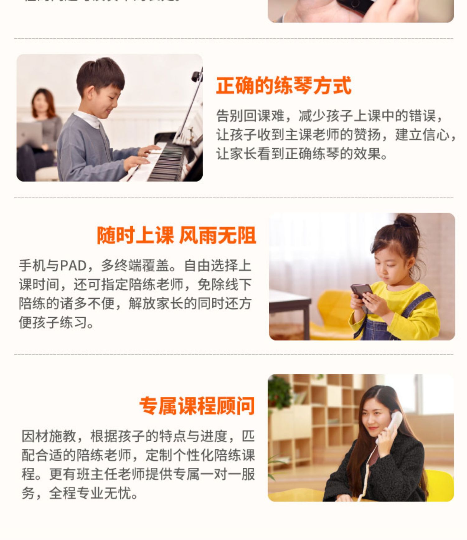 【30+种乐器全部一个价】,真人在线一对一陪练,每节50分钟在线,让每一次练习都有价值。都有进步!学的扎实!