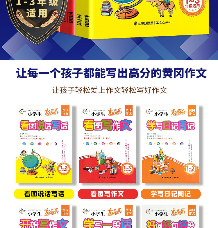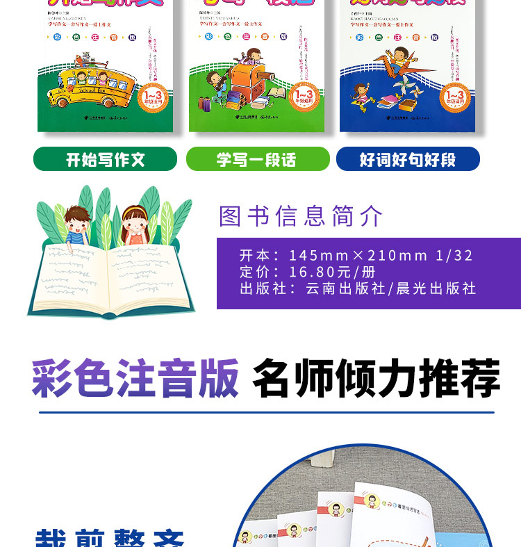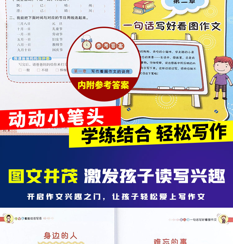 小学生看图说话写话,1-3年级儿童好词好句好段,状物、写景、写人、记事作文指导大全,满分作文书。大版本全彩印刷,加厚正版。强化写作技能,名师点评讲练结合,提高宝宝写作水平,儿童必备课外读物。