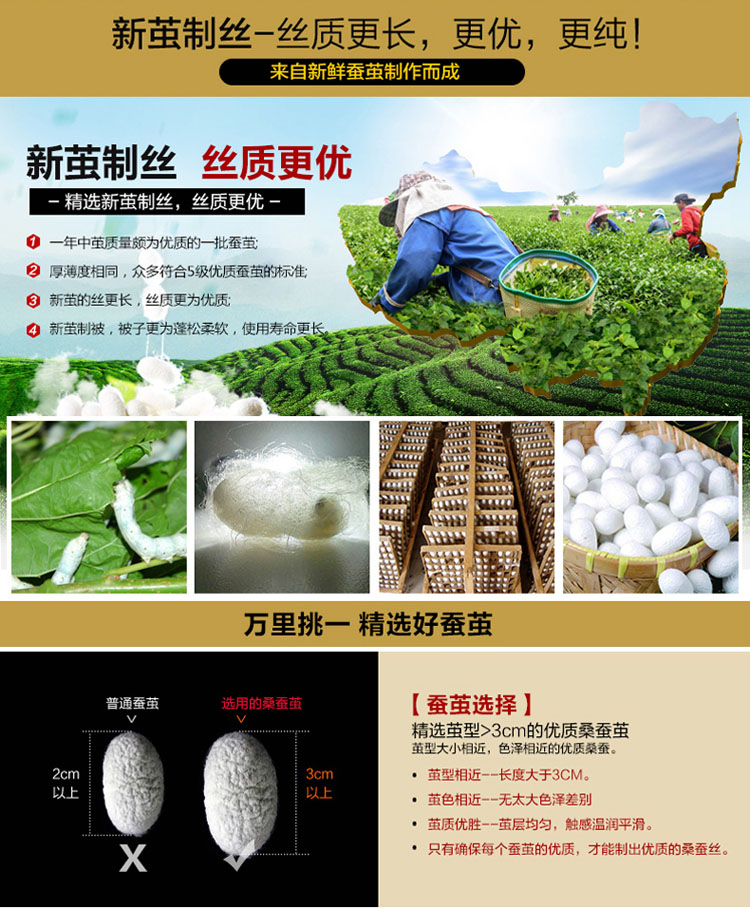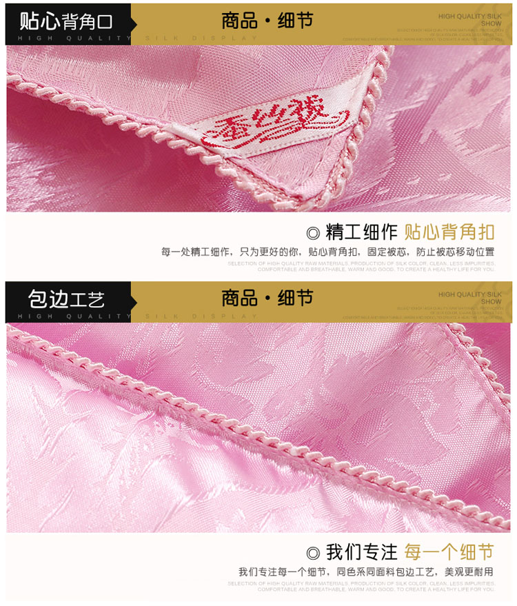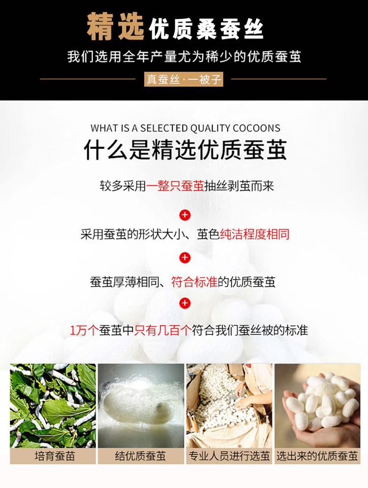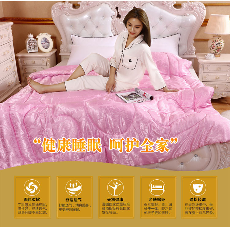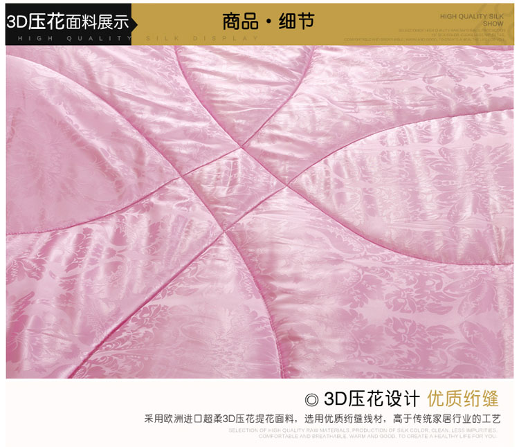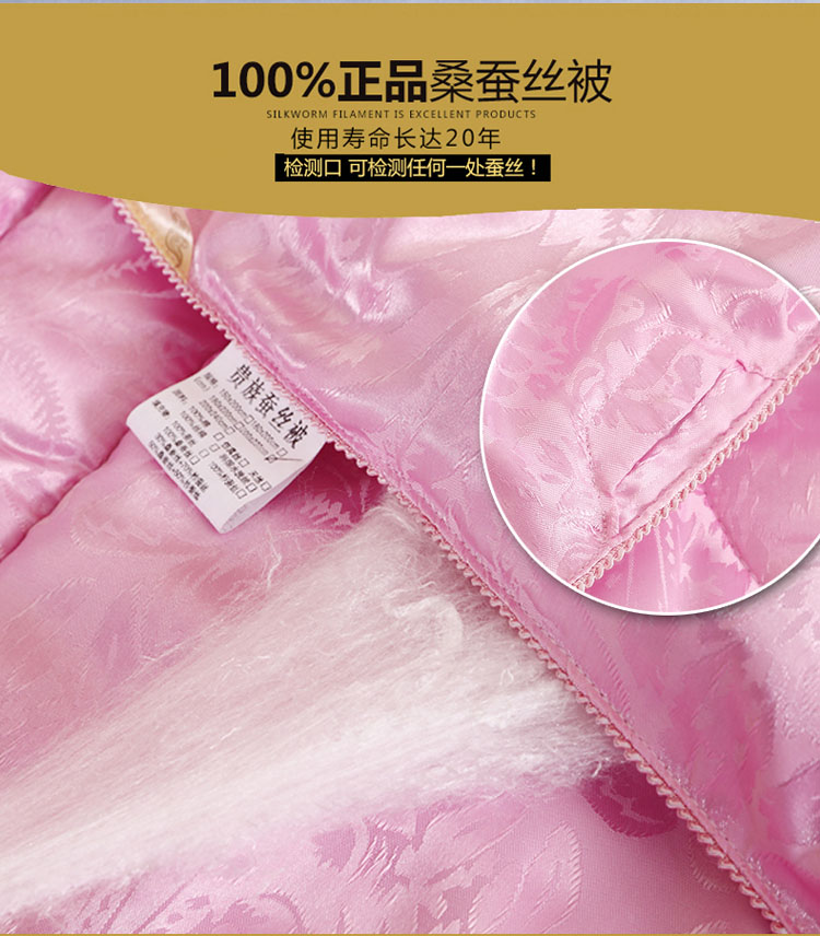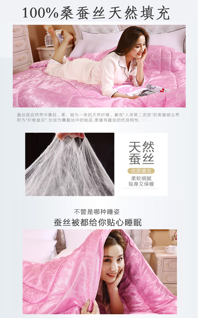 全尺寸!4-8斤任选!天然65蚕丝被,桑蚕丝填充,天丝柔软面料,纯手工绗缝定位,天然健康、高端大气、柔软舒适、透气性好、不起静电、吸湿防螨、经久耐用!
