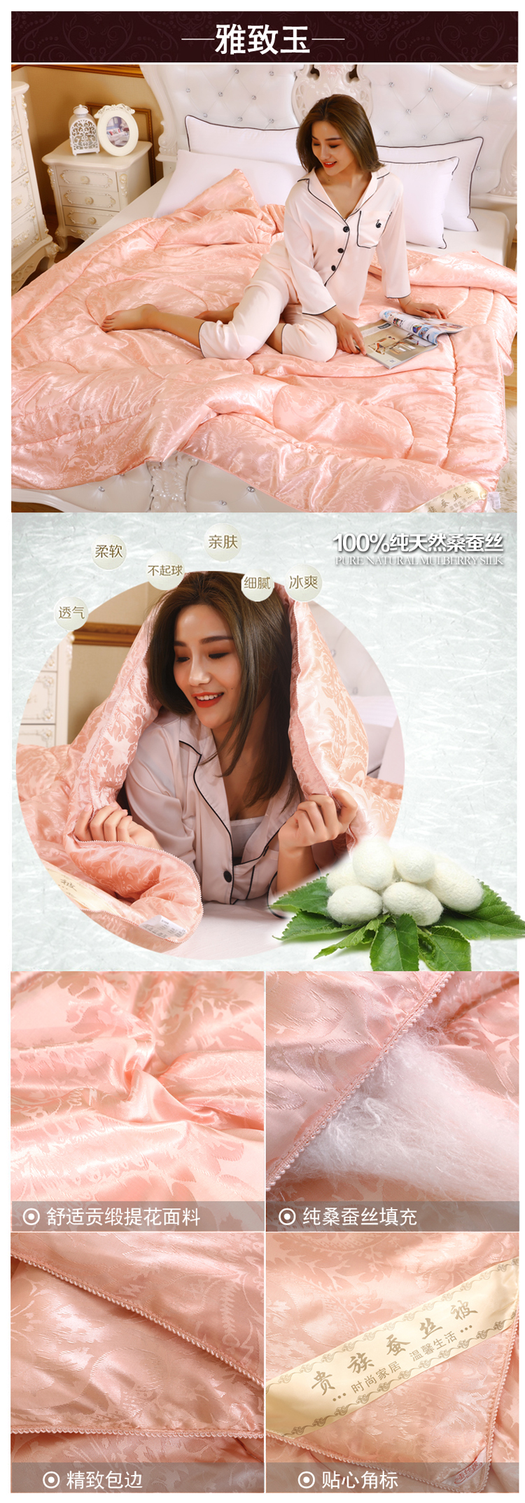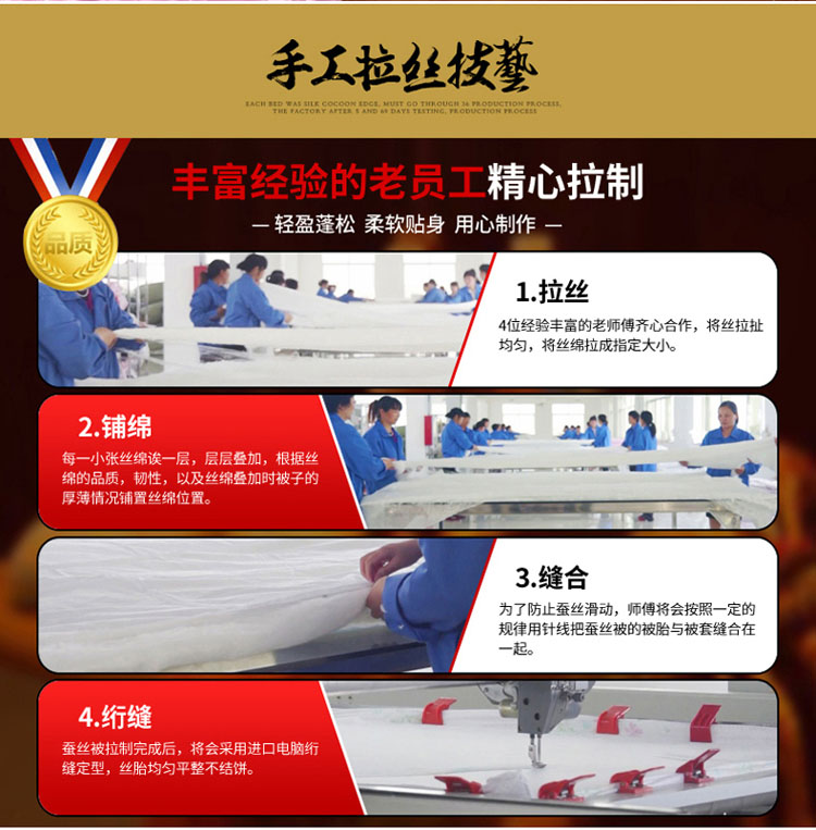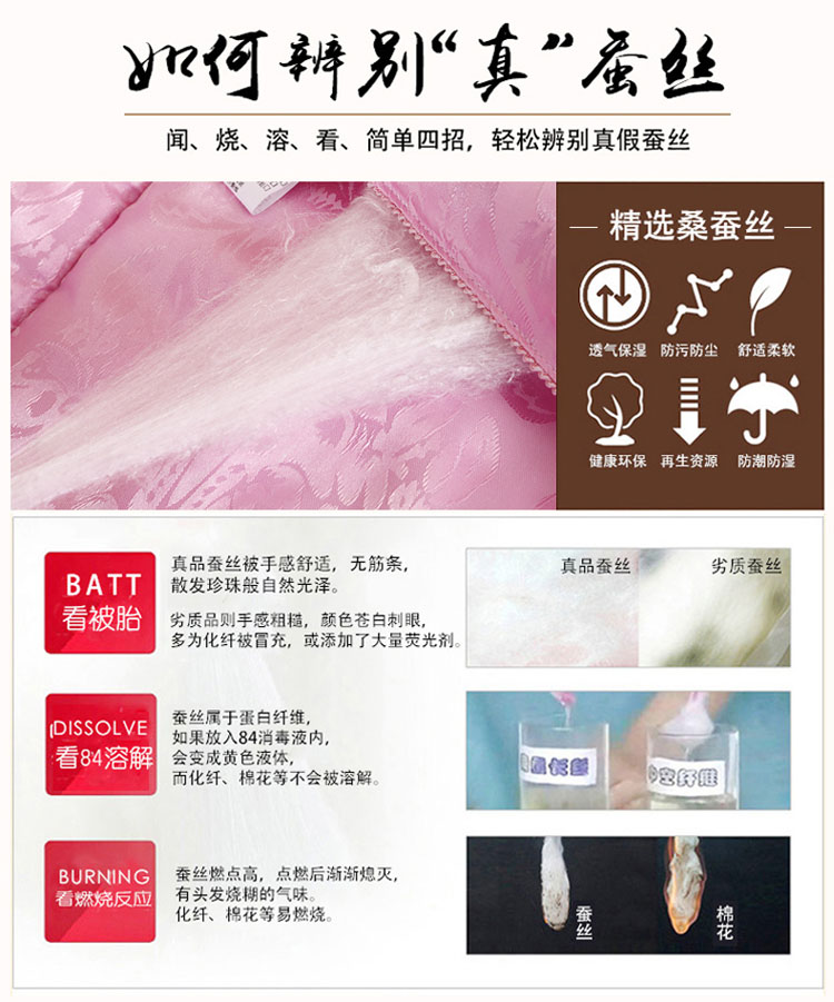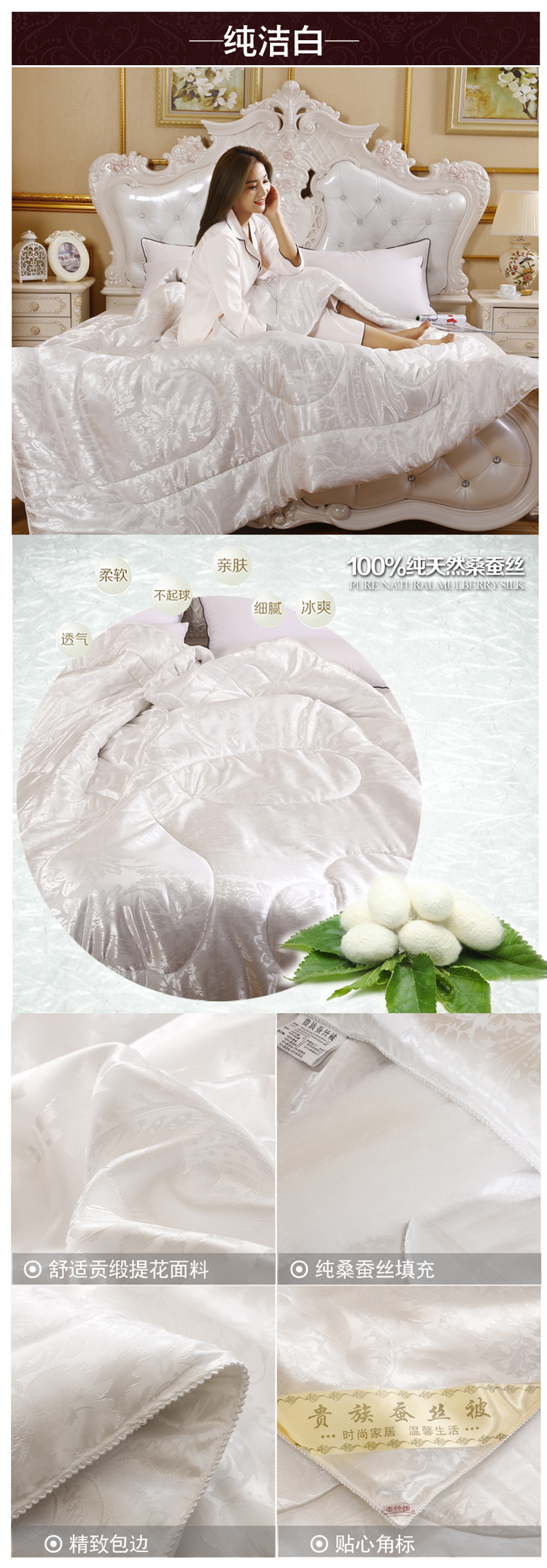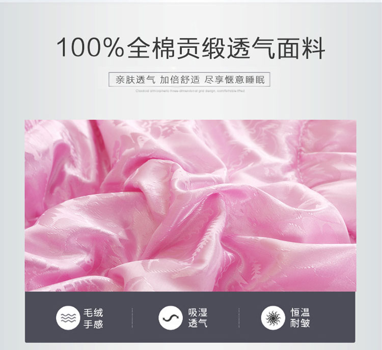 全尺寸!4-8斤任选!天然65蚕丝被,桑蚕丝填充,天丝柔软面料,纯手工绗缝定位,天然健康、高端大气、柔软舒适、透气性好、不起静电、吸湿防螨、经久耐用!