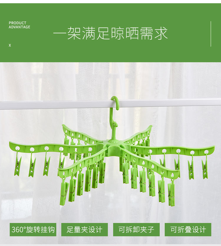 自家工厂生产,36夹折叠晒架,自由晾晒,360°旋转,靓丽三色可选,美观漂亮,自由折叠,收纳不占空间,一架满足晾晒需求,足量夹子,晾晒更多。。坚固耐用实力派,全新PP材质耐晒,不变色。夹口咬齿设计