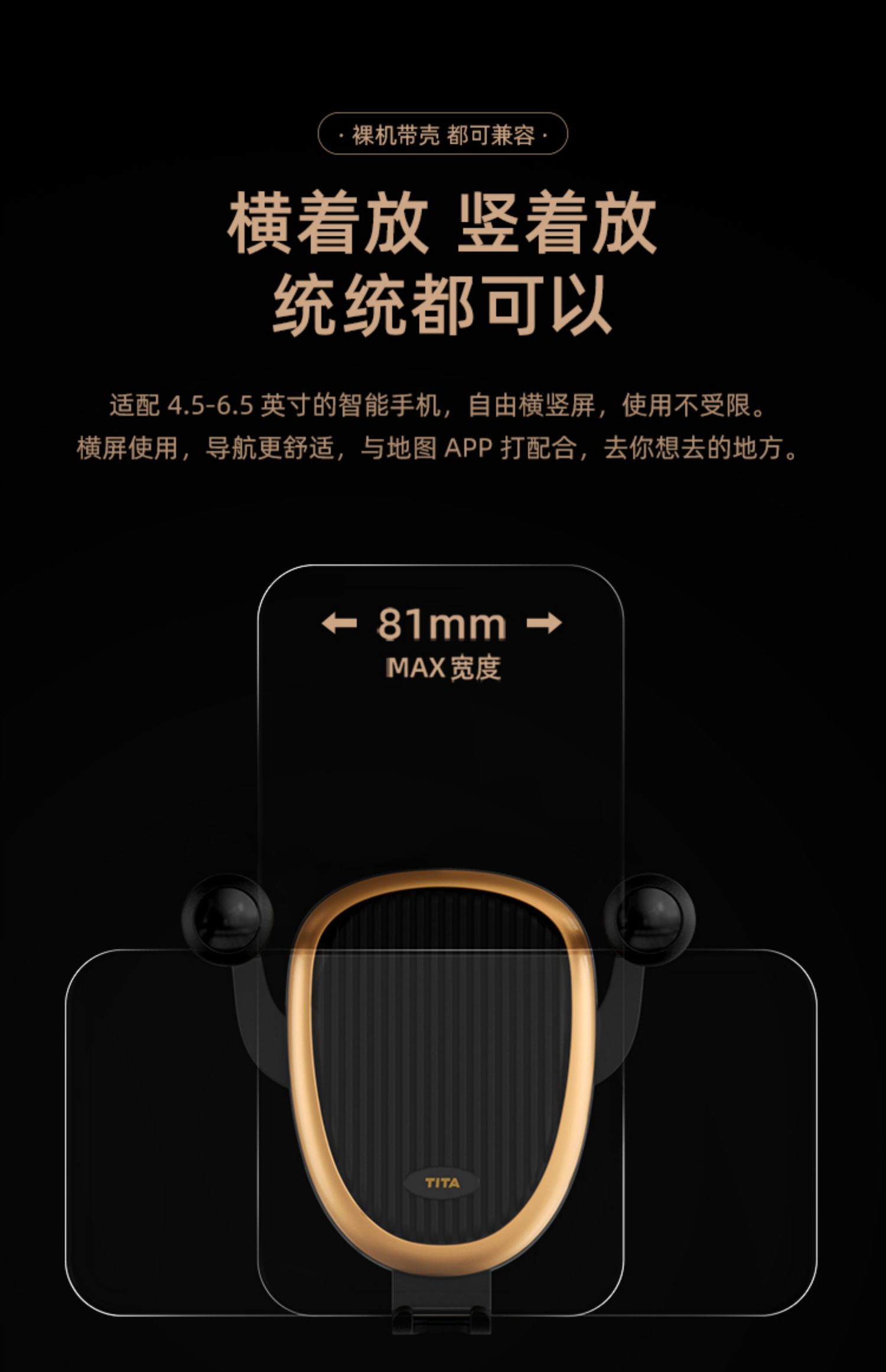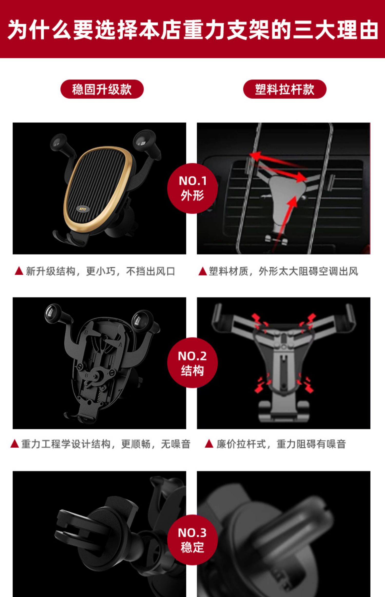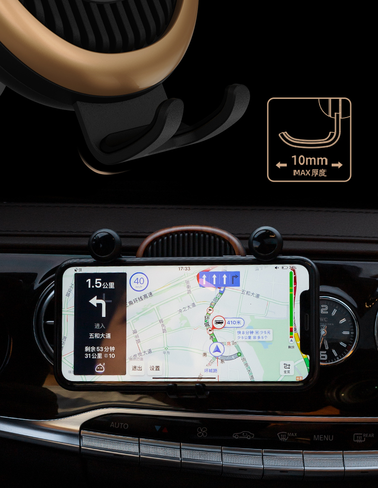 即将改变车载支架的浪潮!还在因为手机没地方摆而烦恼么?车载手机支架安装很简易,直接插上出风口然后夹紧就可以使用了。路况太差怕被震掉?不存在的!一个字:稳!