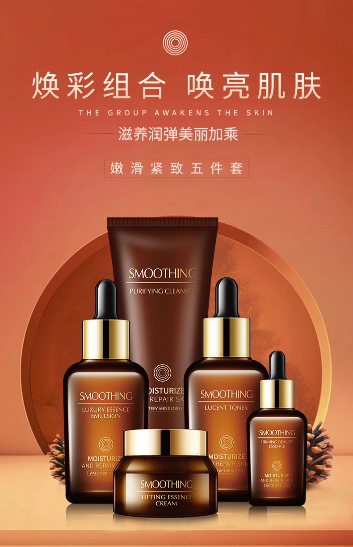 【小棕瓶超值5件套】,深入循环修复,滋润保湿,养护美肌,解锁弹润,光泽肌密,直达肌底,焕发柔嫩少女肌~