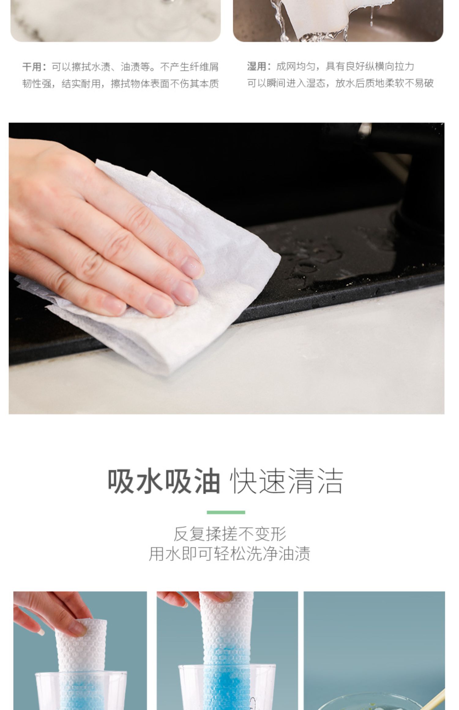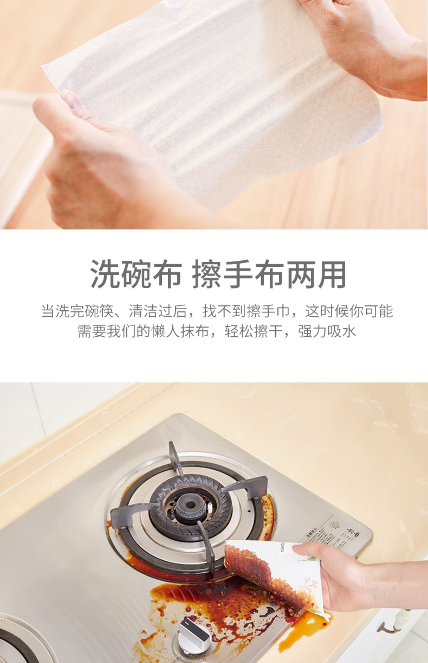 懒人抹布厨房家用洗碗清洁,干湿两用不沾油,吸水量足,不易生菌,不掉色,天然植物纤维,一冲即净,强力去污,一次性抹布,可反复使用。
