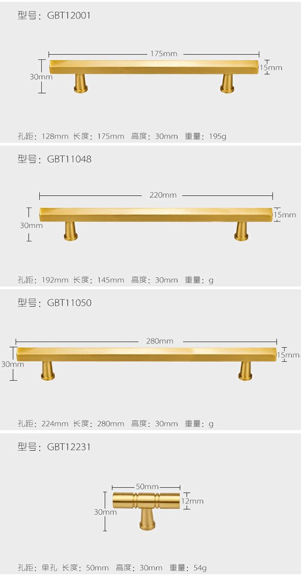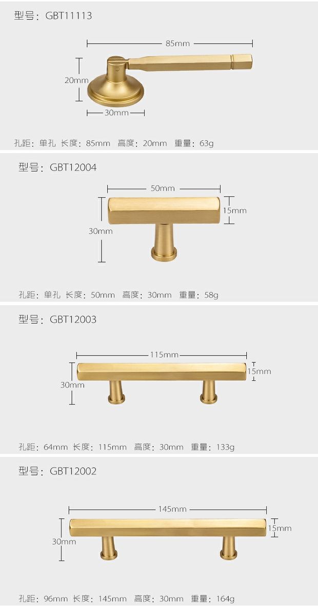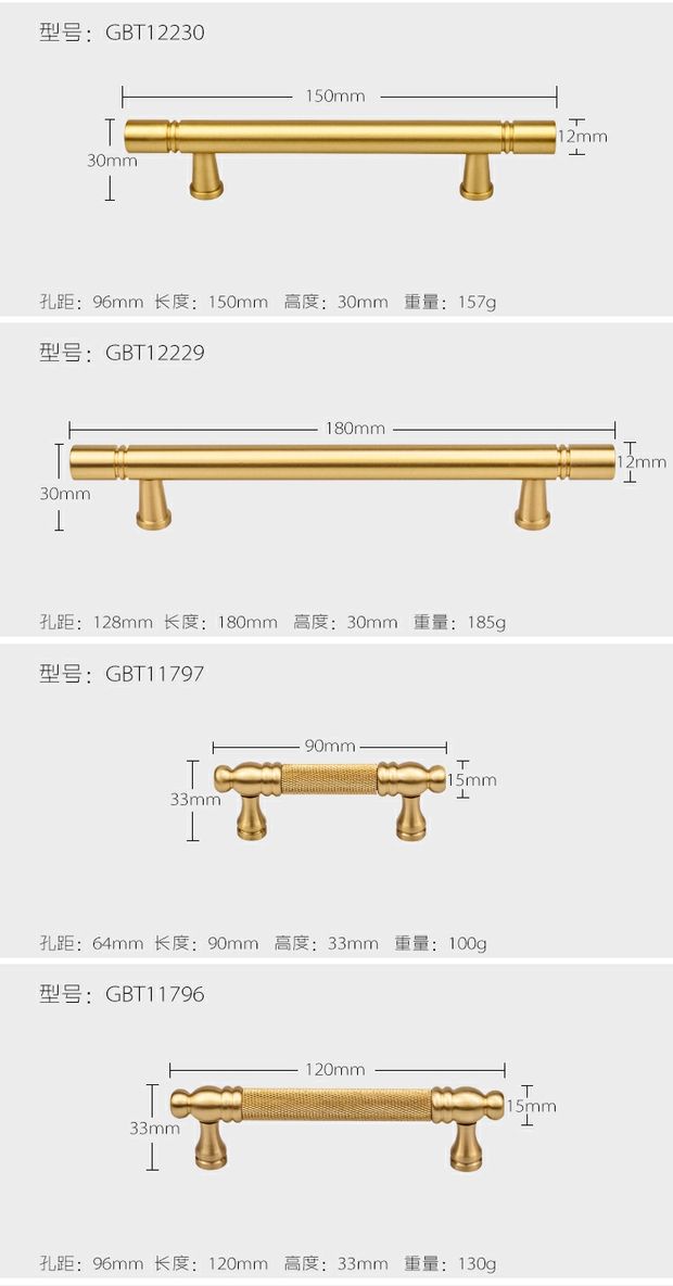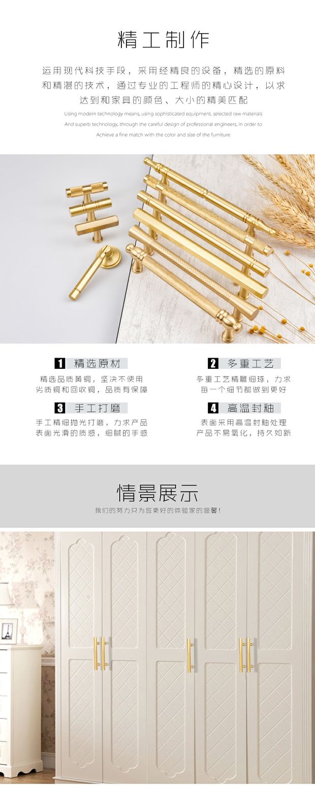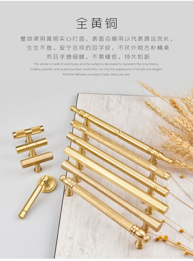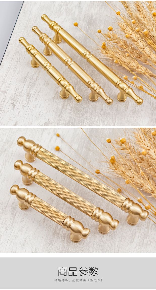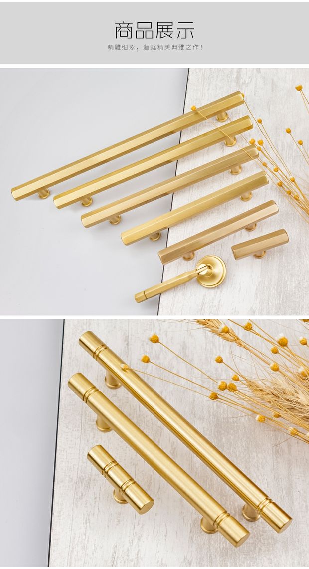 纯黄铜北欧衣橱柜门抽屉拉手