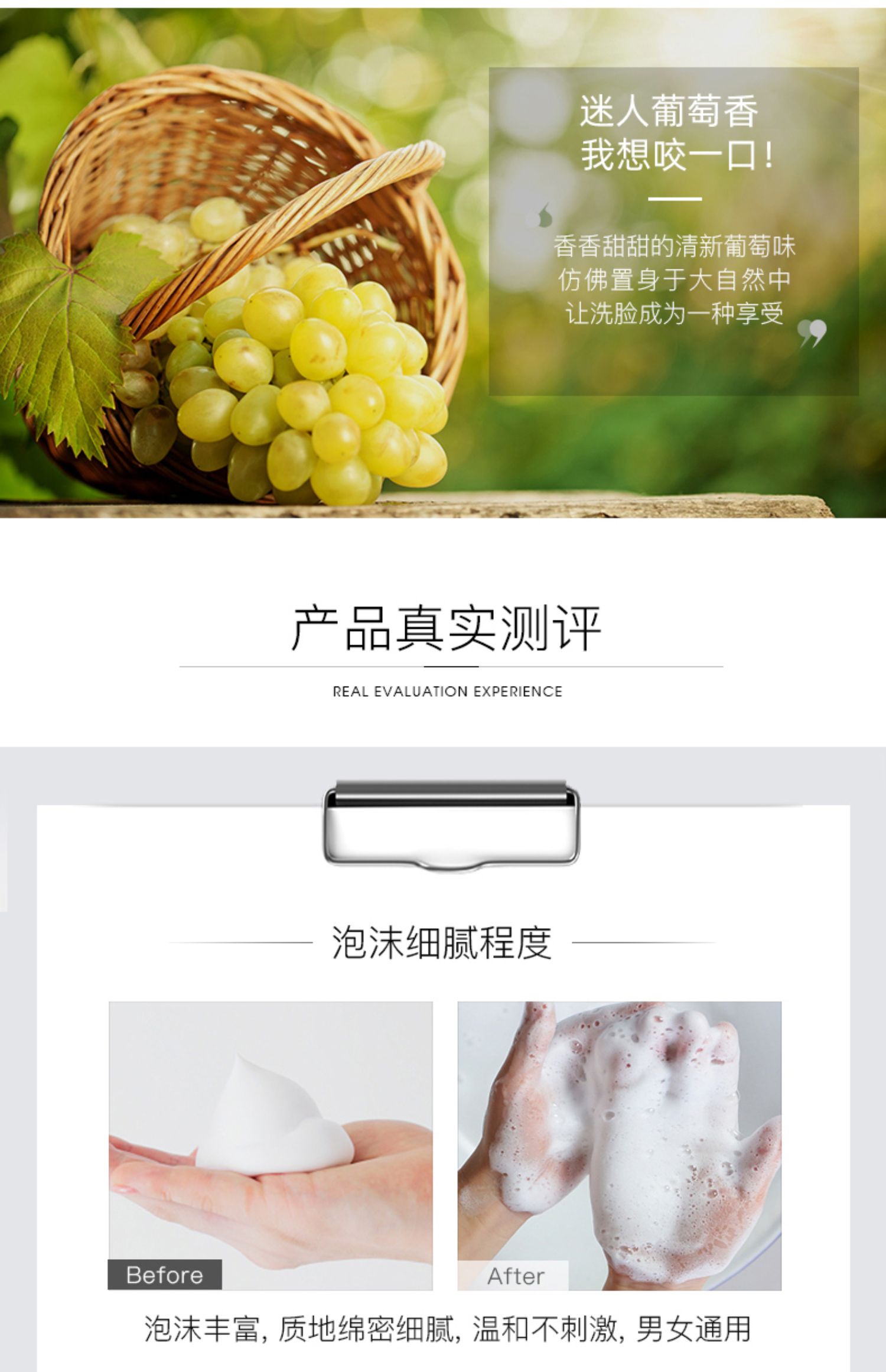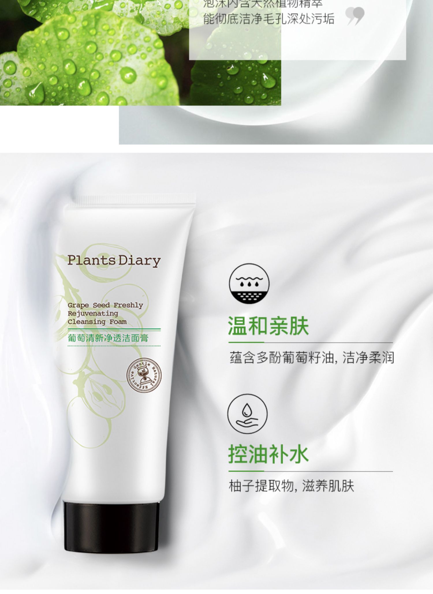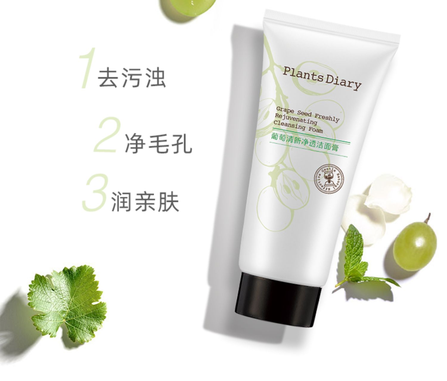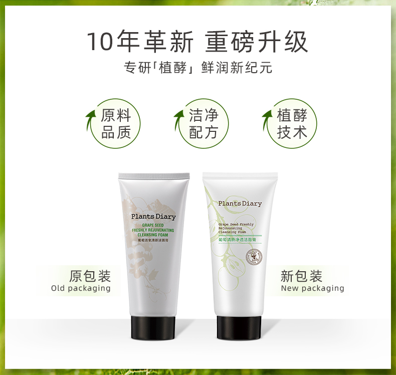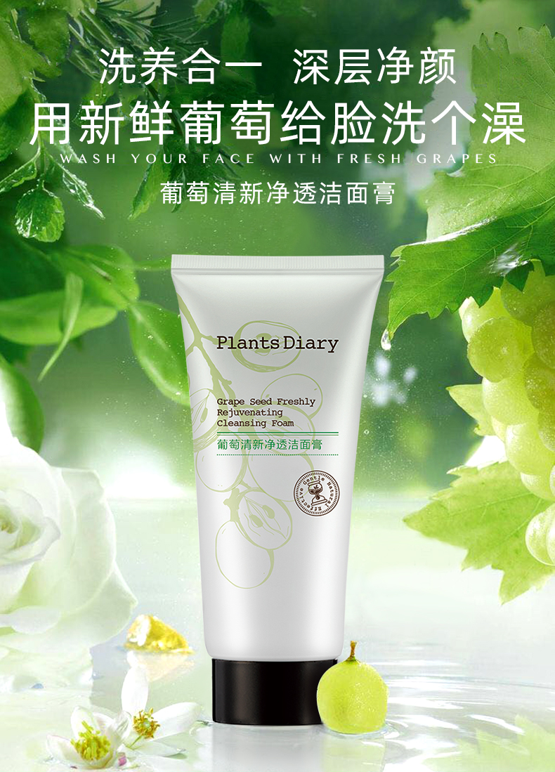 【植物日记】葡萄清新净透洁面膏,今日仅需7.9,富含葡萄萃取精华,激发肌肤活力,增强肌肤防御屏障,配合两大植物精粹成分,洁净呵护肌肤,防洗养合一,深层净颜,用新鲜葡萄给脸洗个澡~【送运费险】
