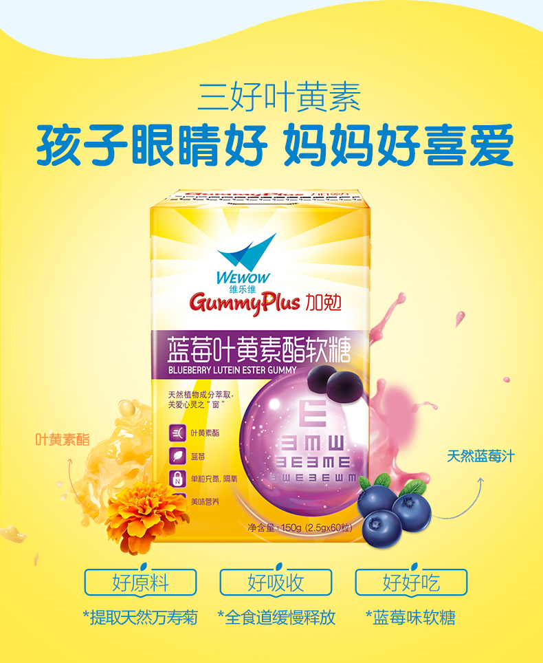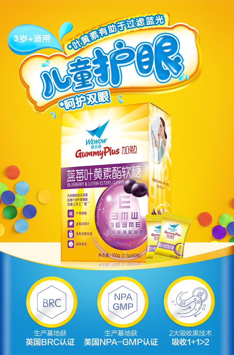 券后价64元【送同品12粒/盒】维乐维儿童蓝莓叶黄素酯软糖60粒,护眼防蓝光,缓解眼睛干涩,抵抗疲劳,对视功能有呵护作用,三大技术,助力孩子好吸收【赠送运费】