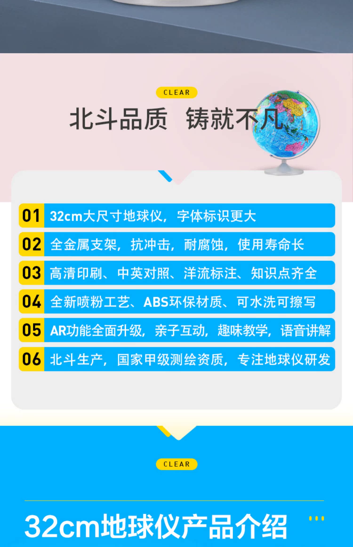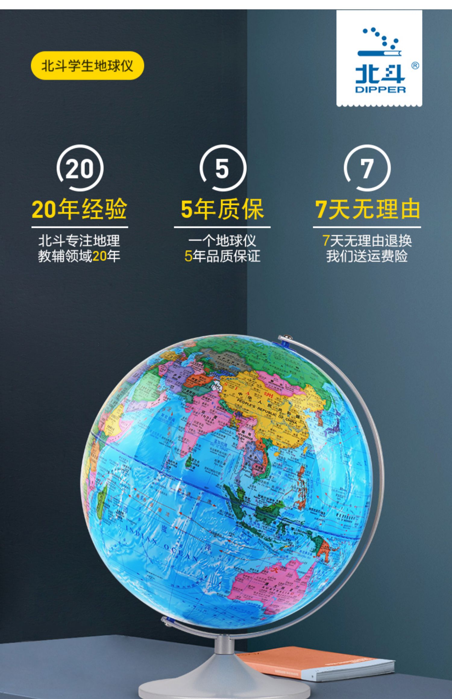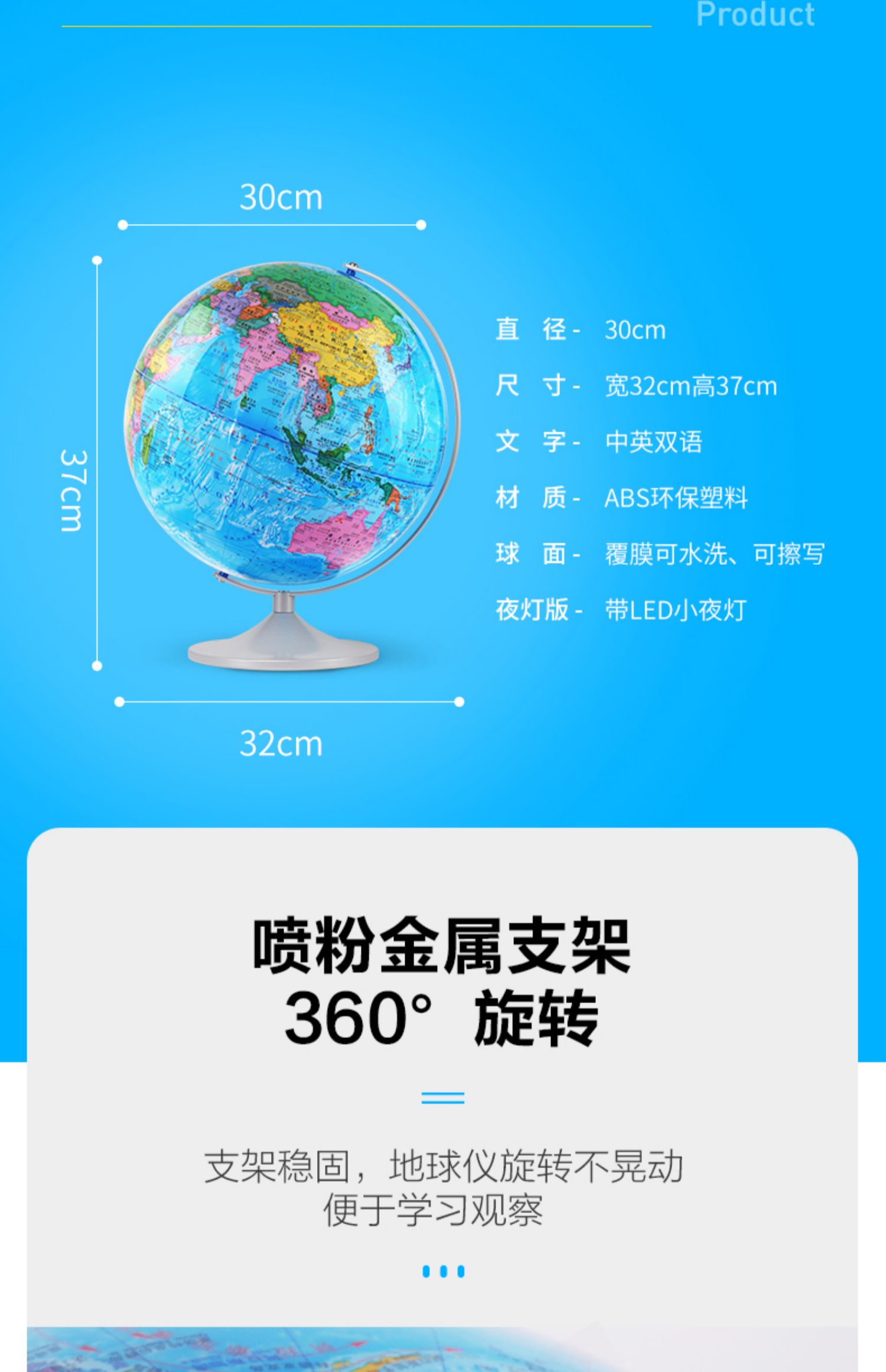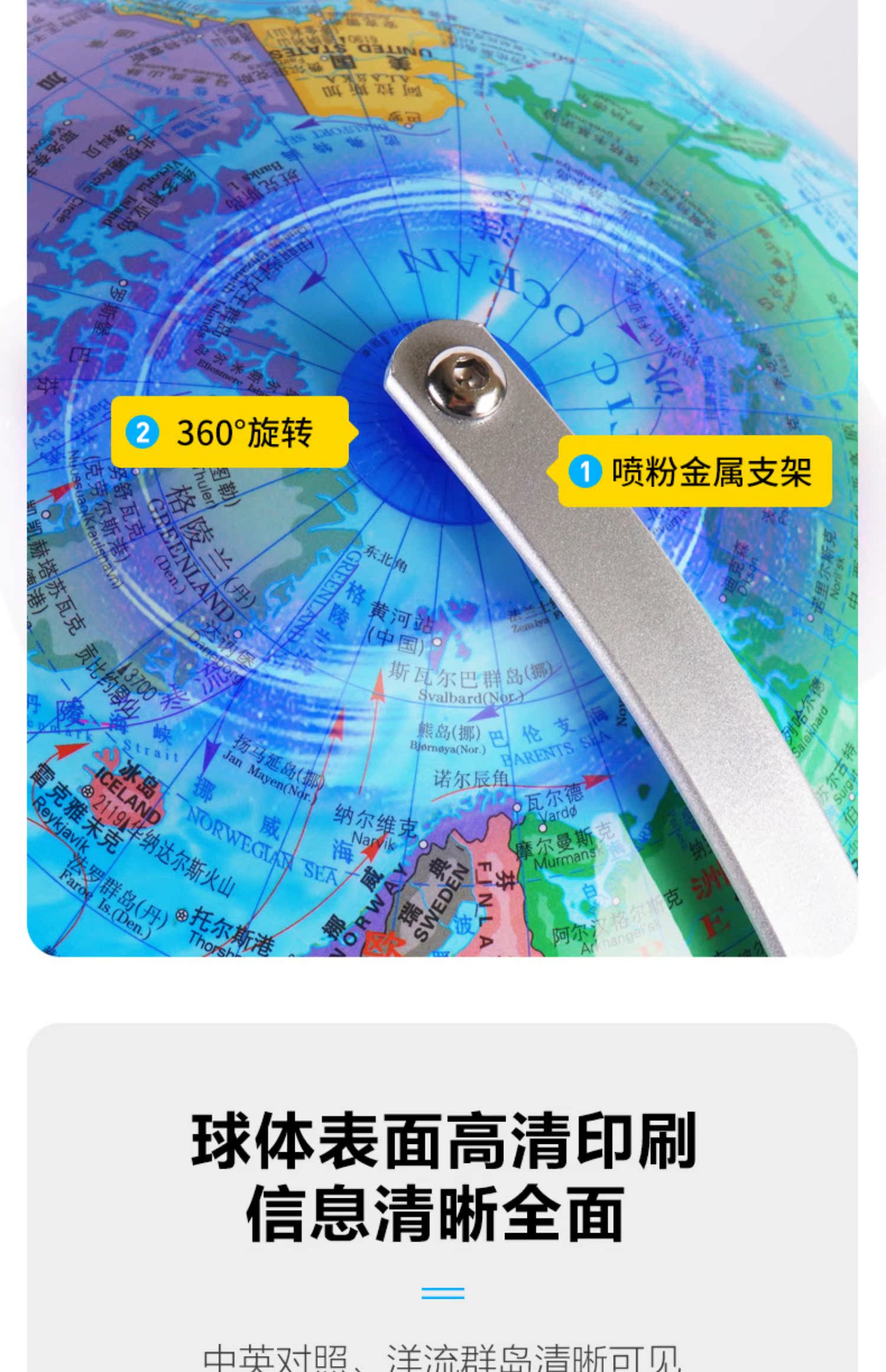 【正品保证】【中小学地理必备+赠品地图】18cm学生版中英万向金属支架,色彩鲜艳便于孩子学习记忆,可以浸泡水洗,健康无毒,防滑磨砂底盘设计。【赠送运费险】