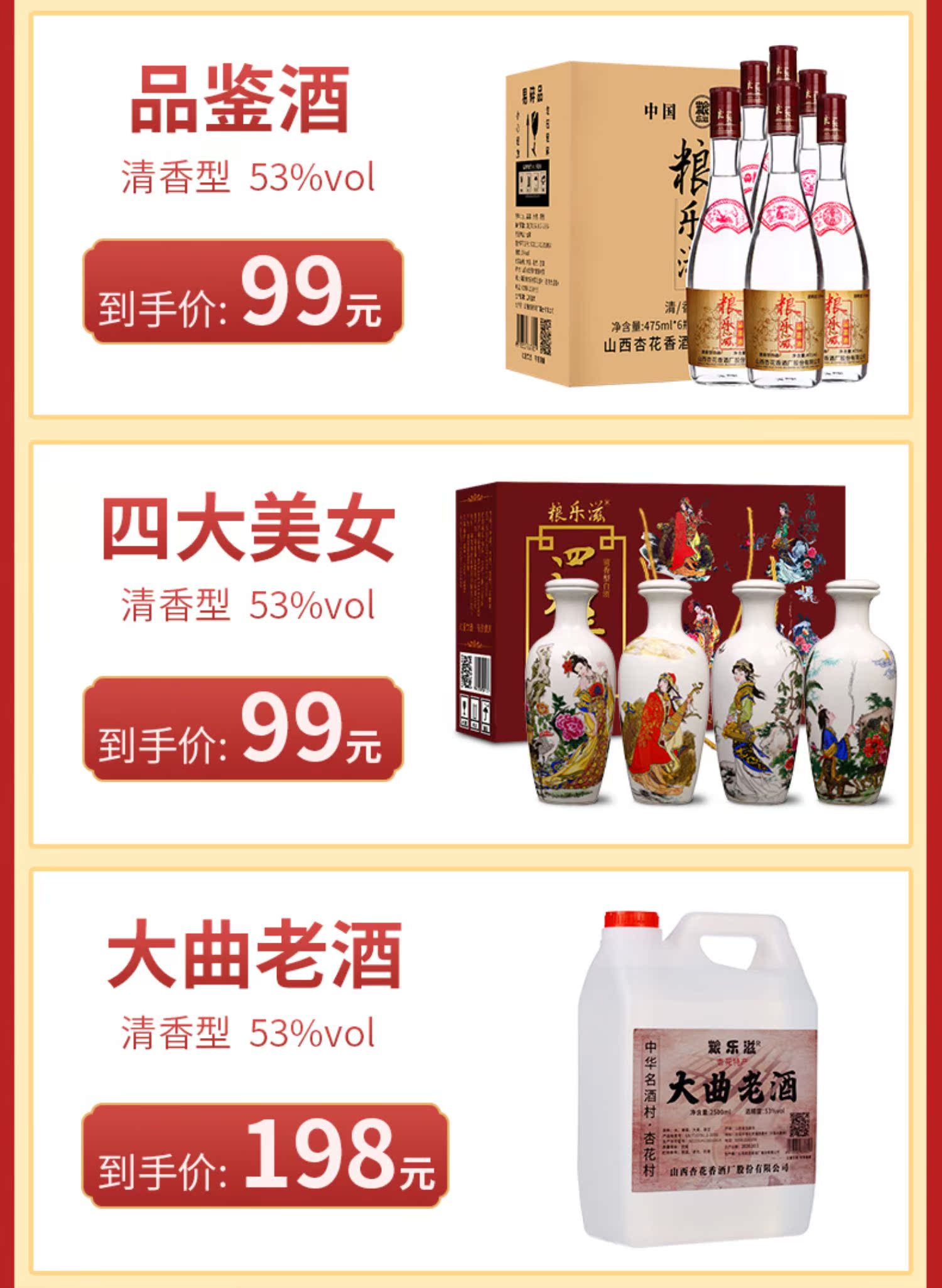 【粮乐滋旗舰店,超高4.9评分】清香型53度60度白酒可选!五星原浆,纯粮酿造,入口绵甜,醇厚爽冽,持久留香,好喝不上头,回味悠长【赠运费险】