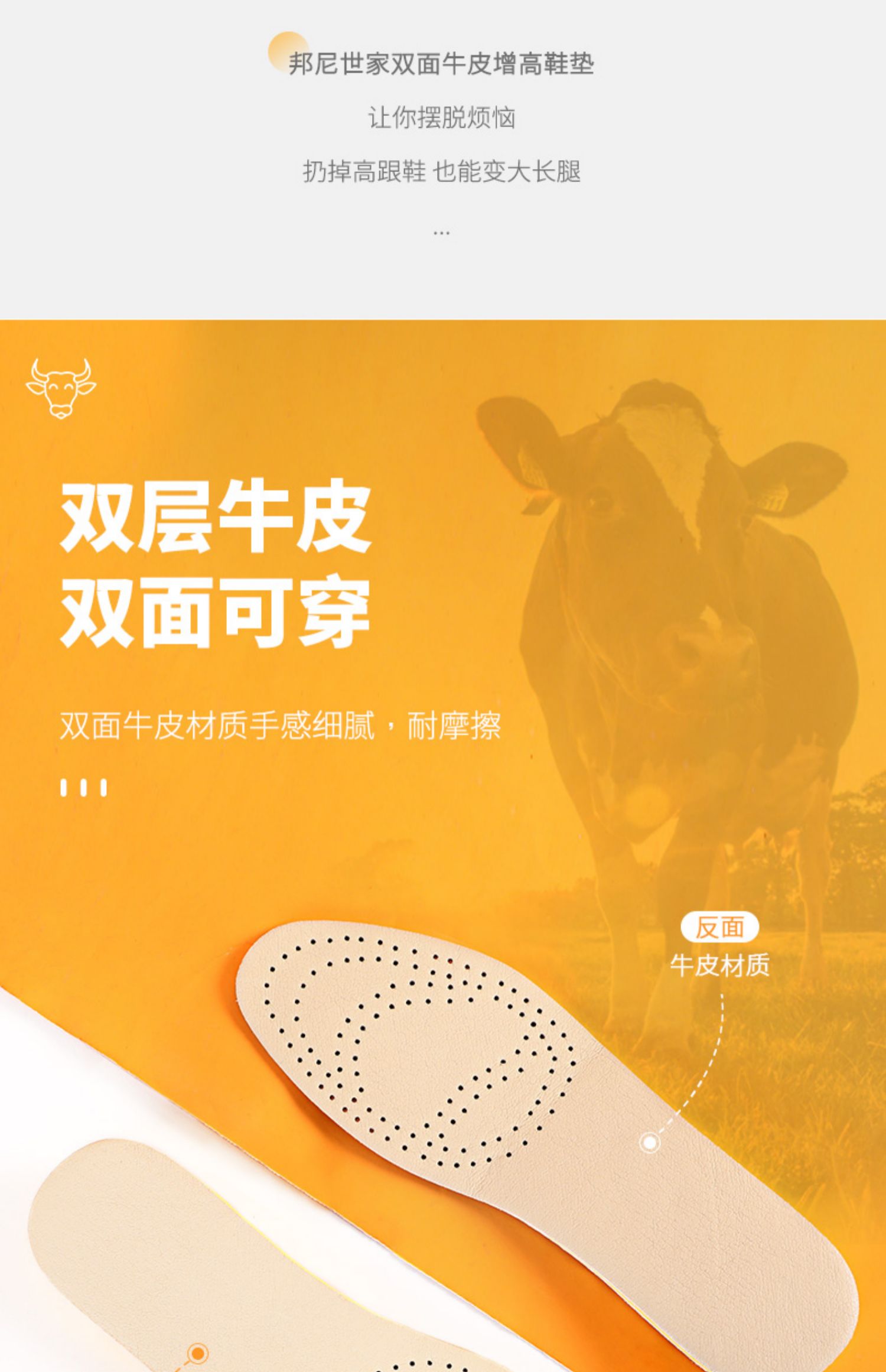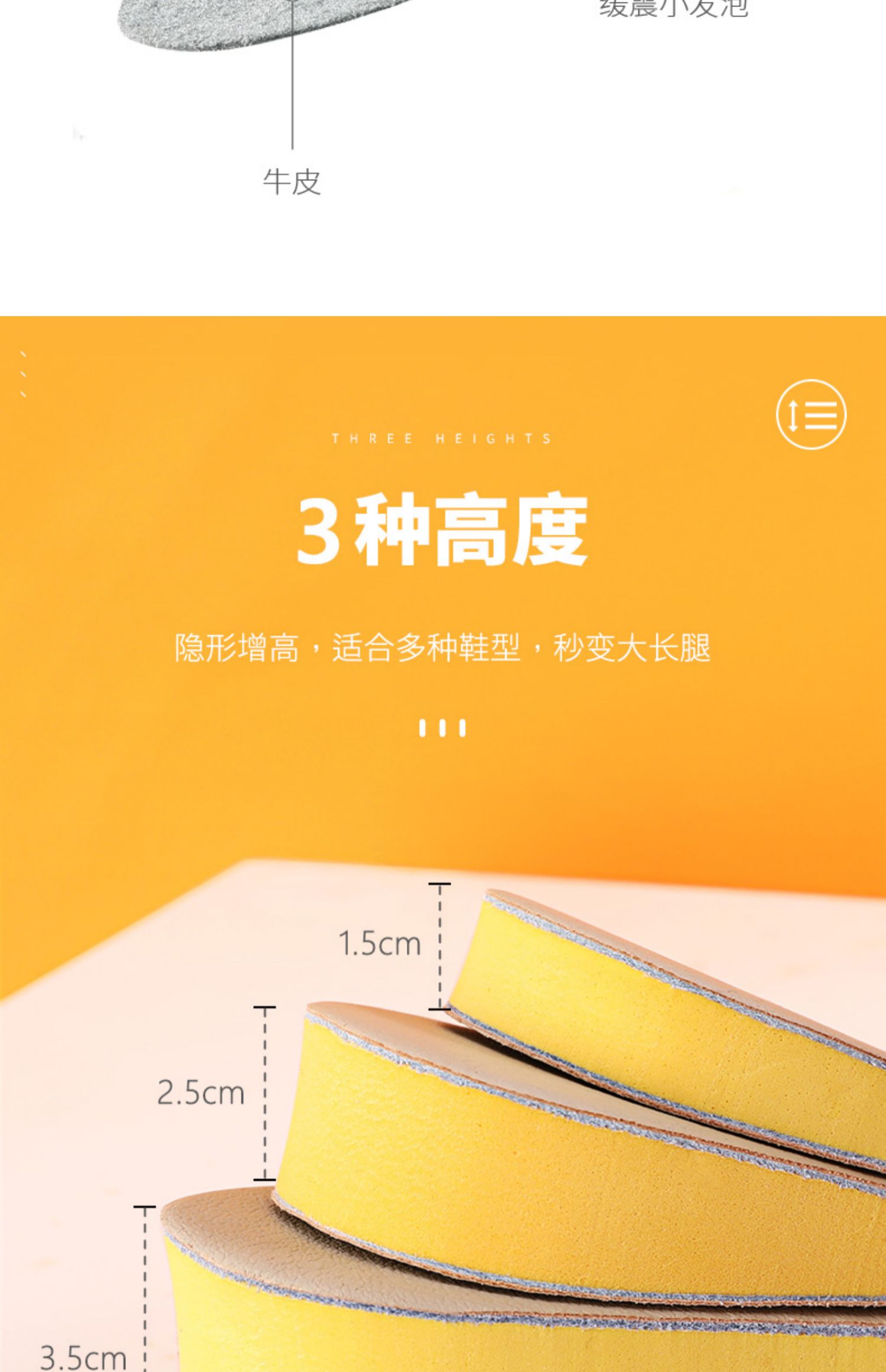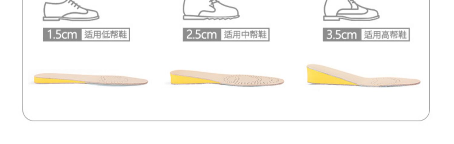 【超值2双】网红增高鞋垫!高度自信,双面牛皮增高!吸纳缓震,柔软舒适,透气网布,轻质中底,U型跟杯,灵活裁剪,舒适行走。