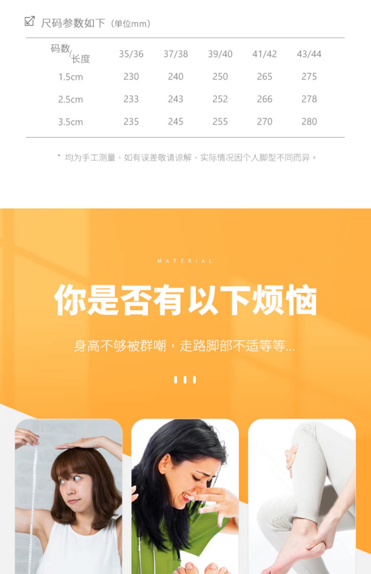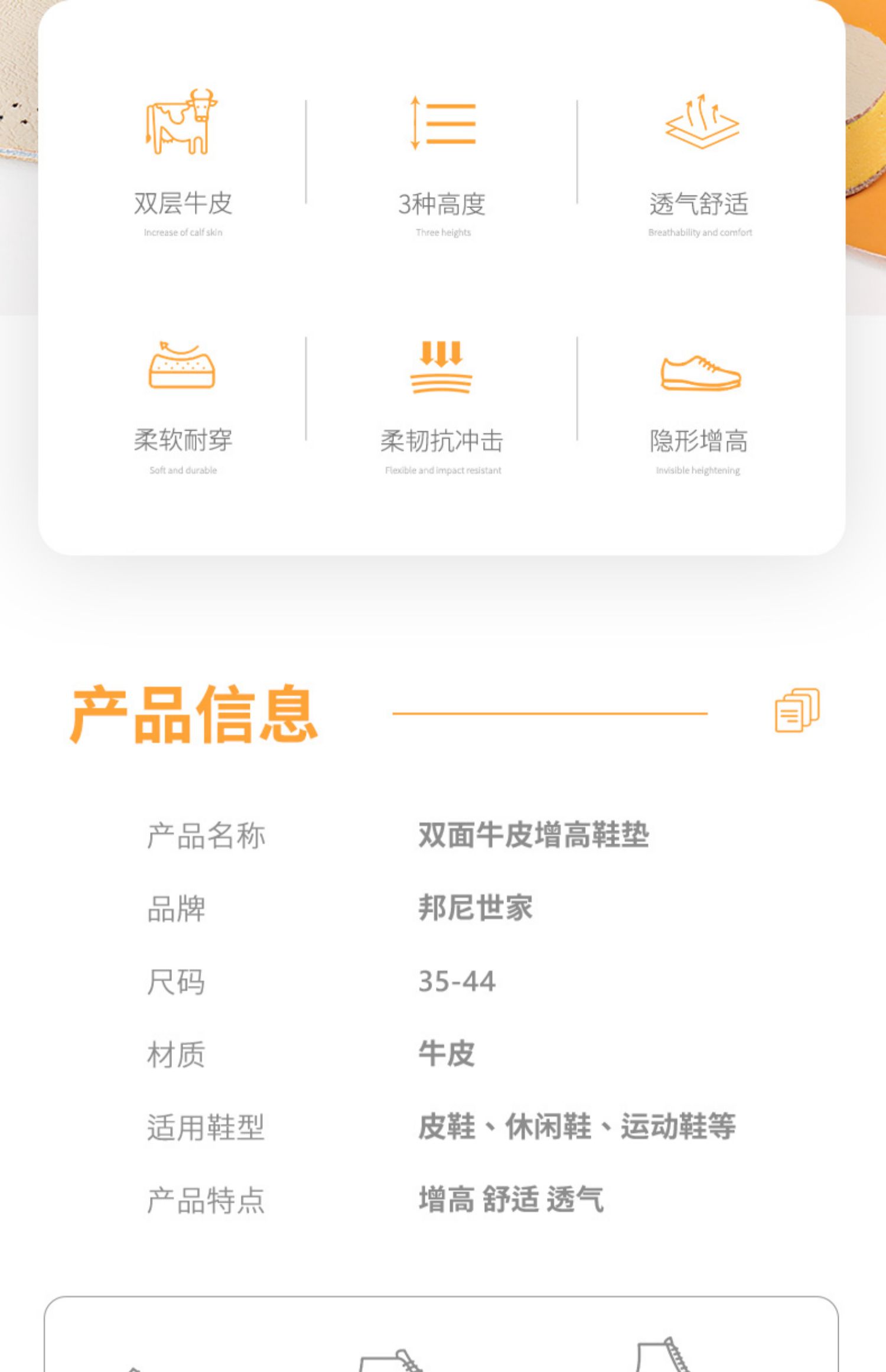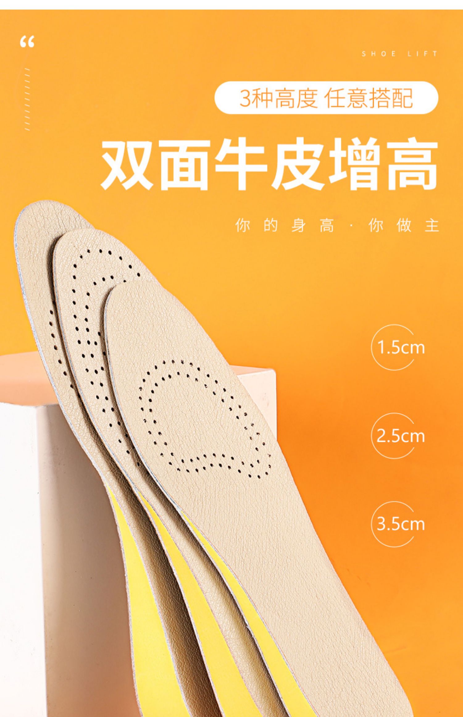 【超值2双】网红增高鞋垫!高度自信,双面牛皮增高!吸纳缓震,柔软舒适,透气网布,轻质中底,U型跟杯,灵活裁剪,舒适行走。