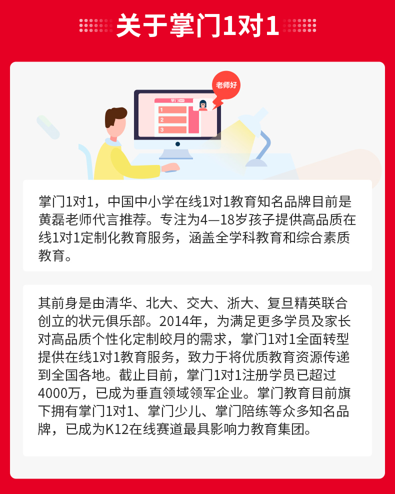 【黄磊推荐,掌门1对1】精英老师在线1对1陪伴学习课程覆盖小四到高三全年级全科目对学生学情专业测评定制专属学习计划梳理考点查漏补缺培优拔高的课程下单即可享受超值精美教辅礼包一份