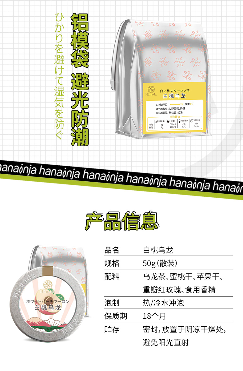 蜜桃乌龙茶:蜜桃干,苹果干,乌龙茶,水蜜桃香精,天然健康,果香带甜,茶色清澈明亮,丝滑润口,丝质三角茶包,一包一泡,饮用方便,冲泡简易,随开随取,精致包装,美观大方!