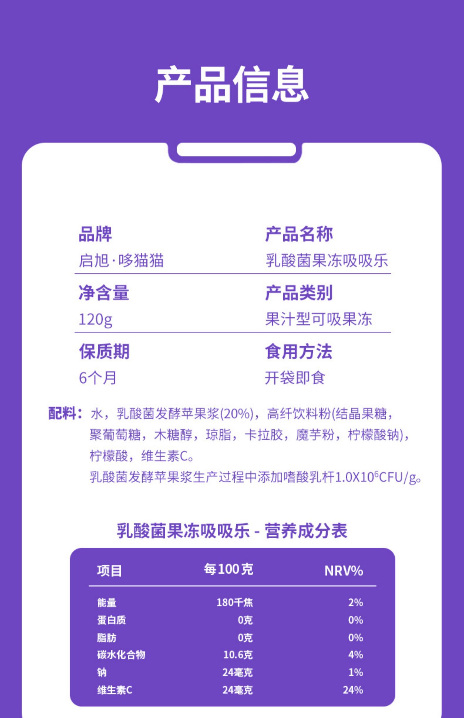 【启旭】哄娃神器!苹果酱发酵而成,特含乳酸菌、维生素C,酸酸甜甜,营养又好吃!果冻泥吞咽更安全,不含香精防腐剂,妈妈的放心之选~【赠运费险】