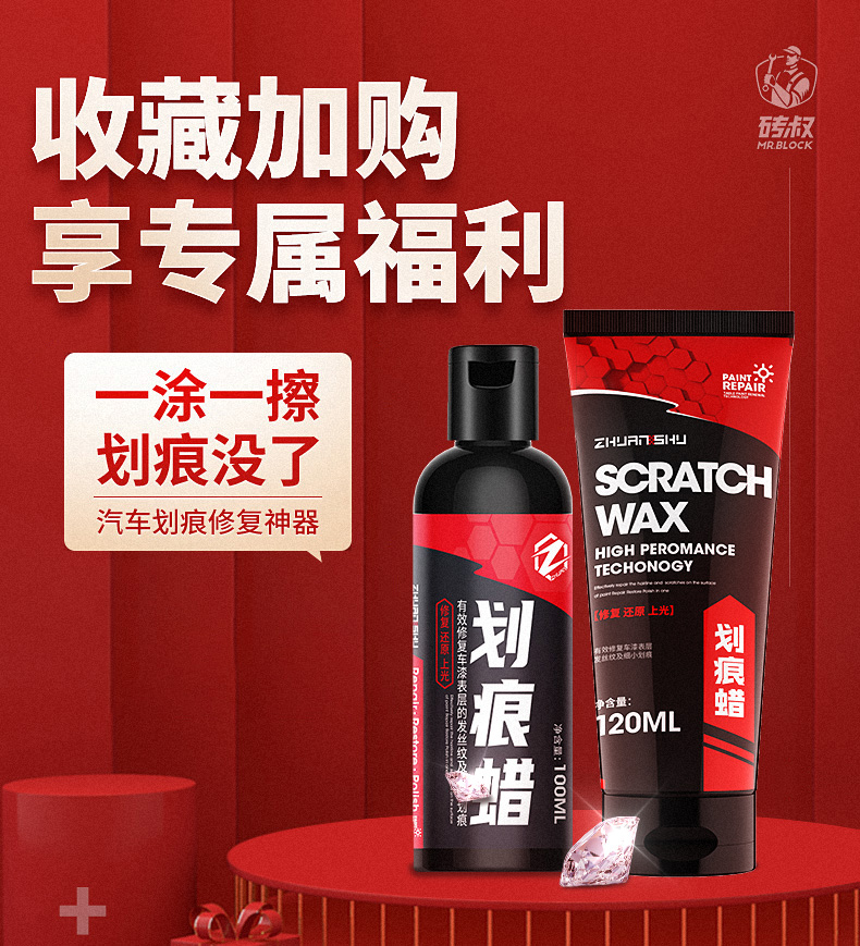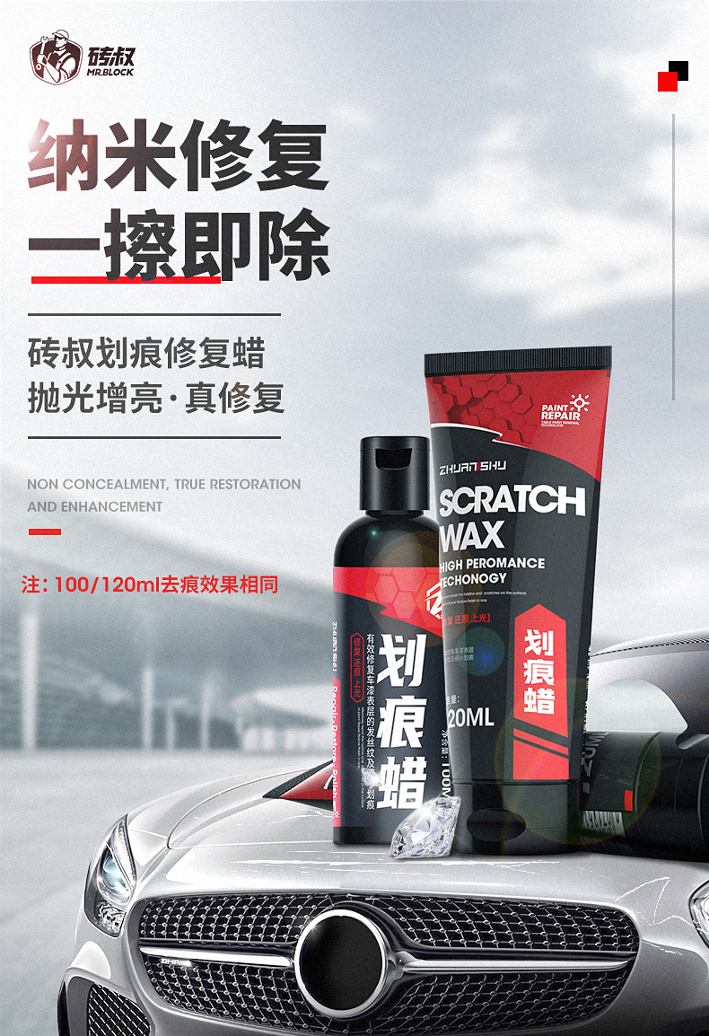【各色车漆通用型】砖叔划痕修复神器,各种汽车漆面划痕,一擦如新,不变色不反弹,真修复,非掩盖,新手小白补漆专属,3分钟快速修复省心省力更省钱!