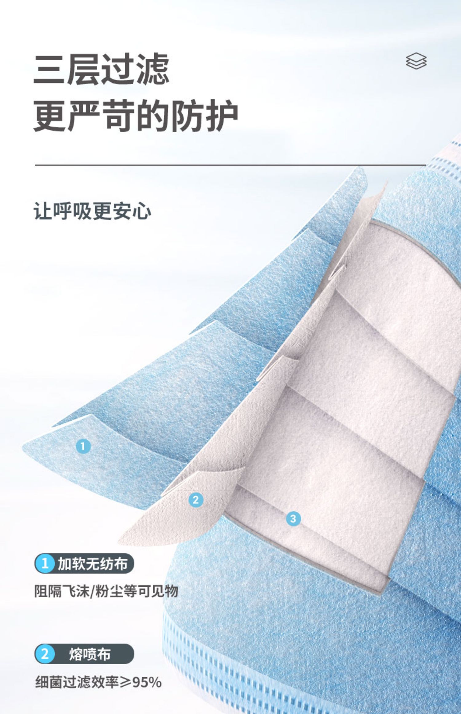 【100只装】医用口罩才够安心,正规认证,质量可靠,适合夏天的口罩,更柔软更透气,内耳封边,更贴脸,高弹性耳带不勒耳,长时间佩戴很舒适