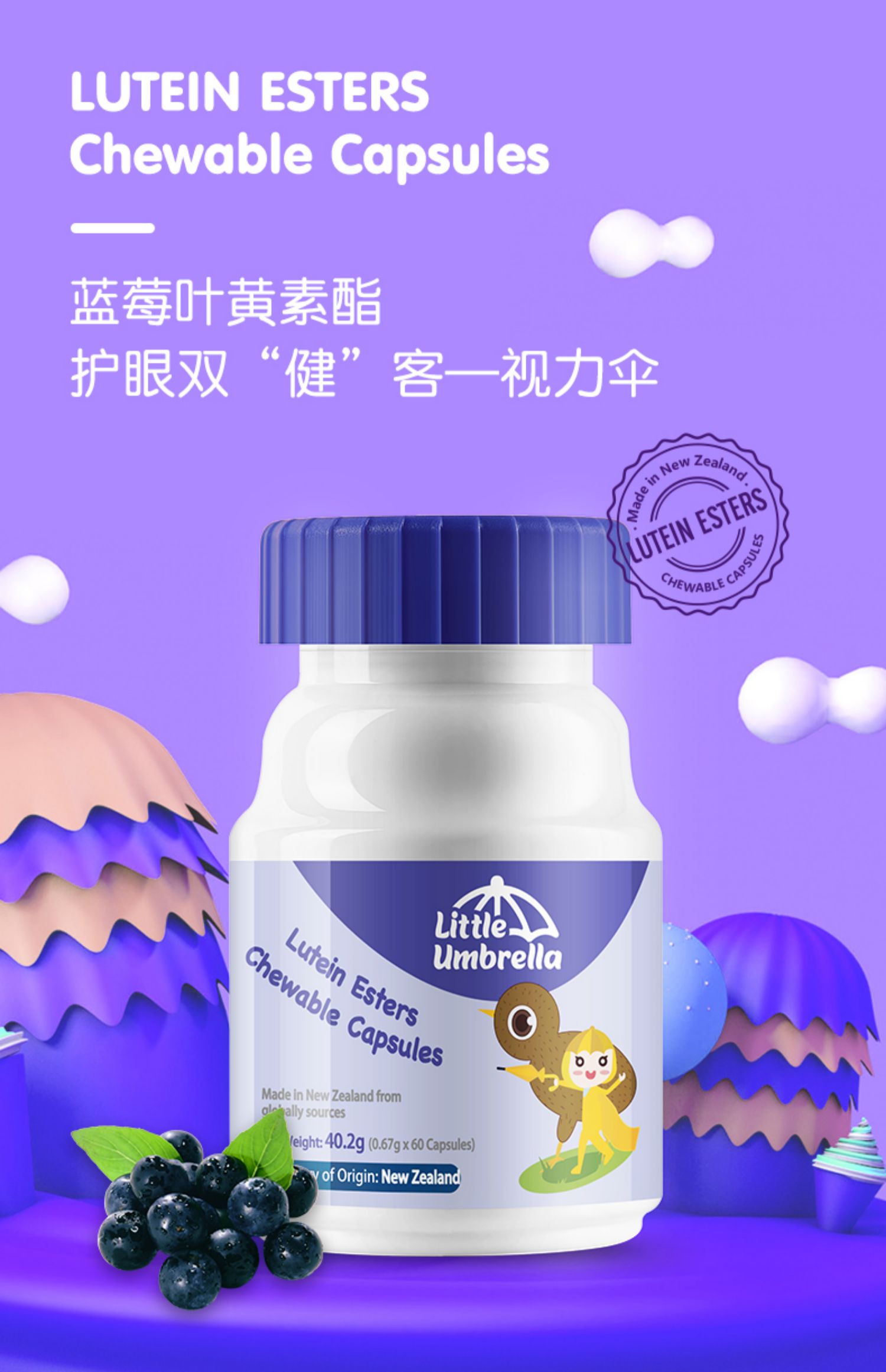 【满10元减3.9元】新西兰国民儿童营养,中澳国际双专利保证,叶黄素酯,天然蓝光过滤器,更优于叶黄素的视力保护伞,给宝宝眼睛更强的保护!