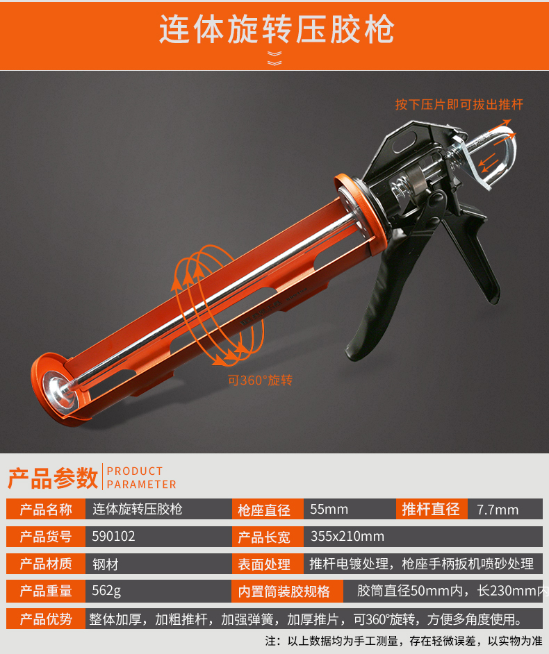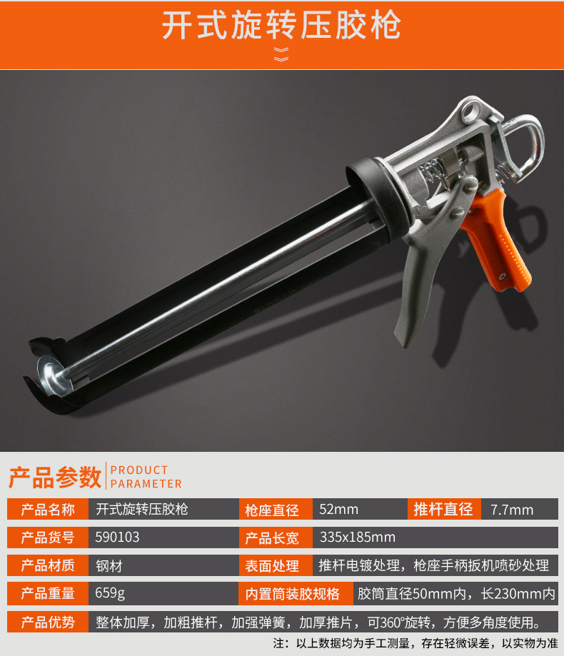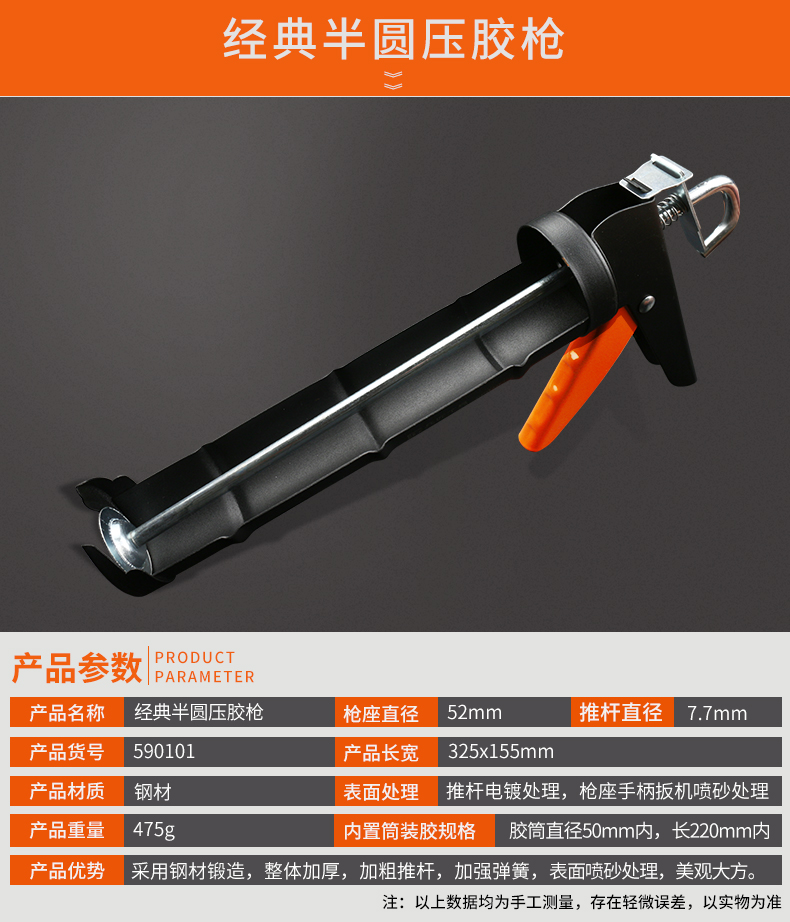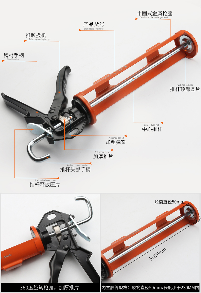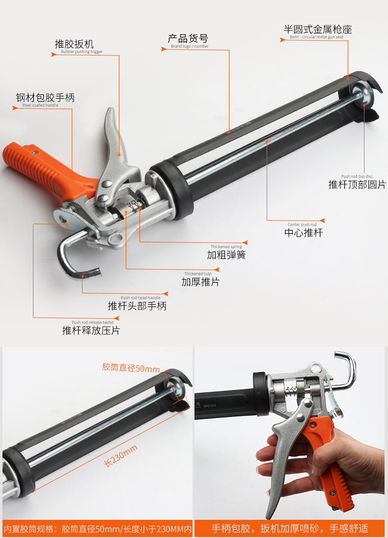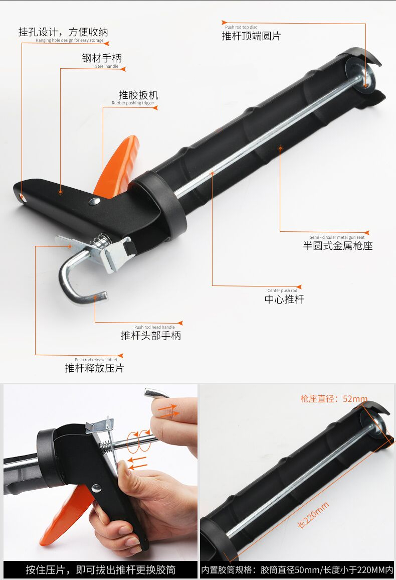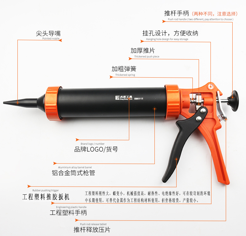 省力,耐用,手柄舒适,施工轻便;捅针设计,手柄舒适,操作简单,施工轻便,打胶流畅,方便实惠,亏本赚销量,买到就是赚到!