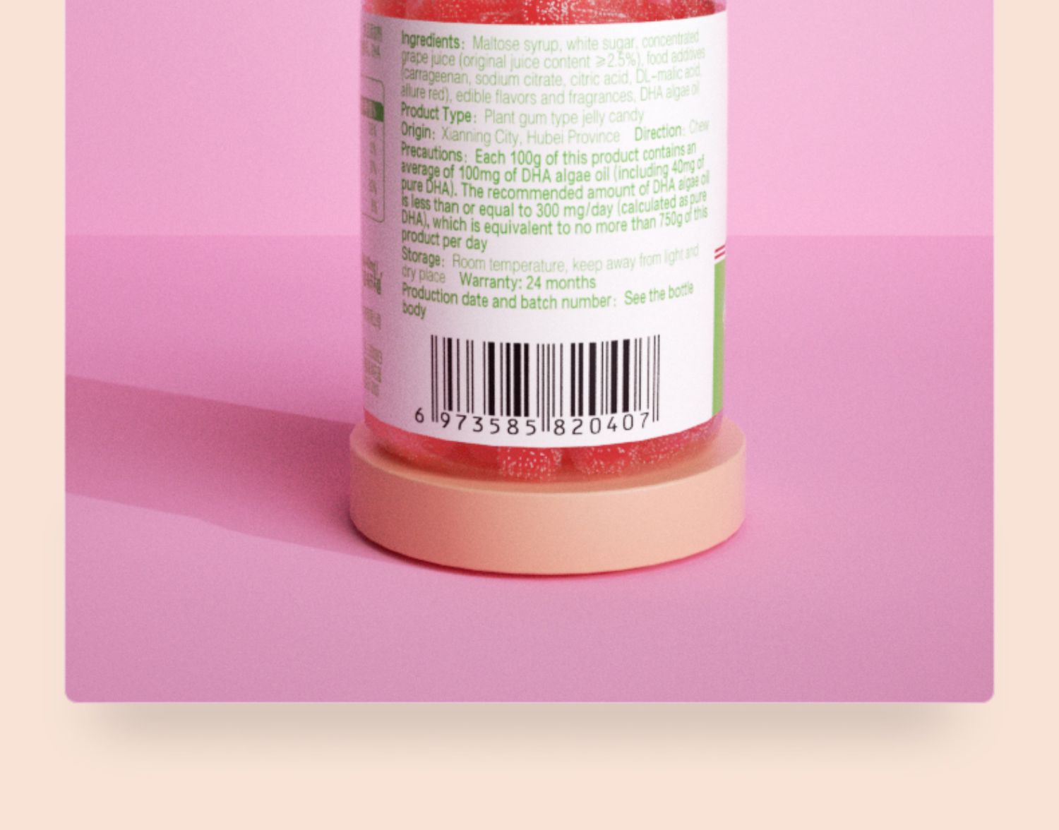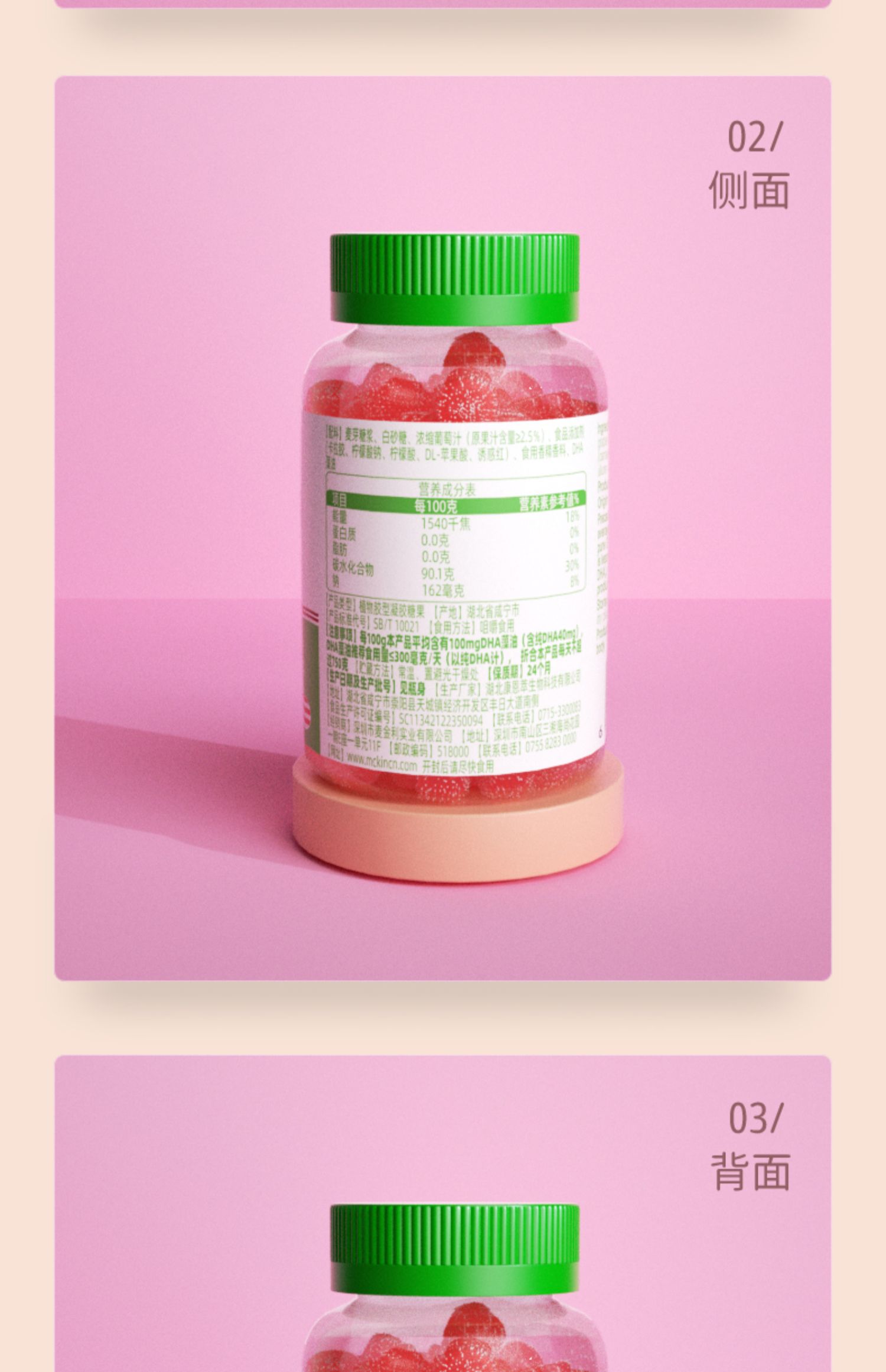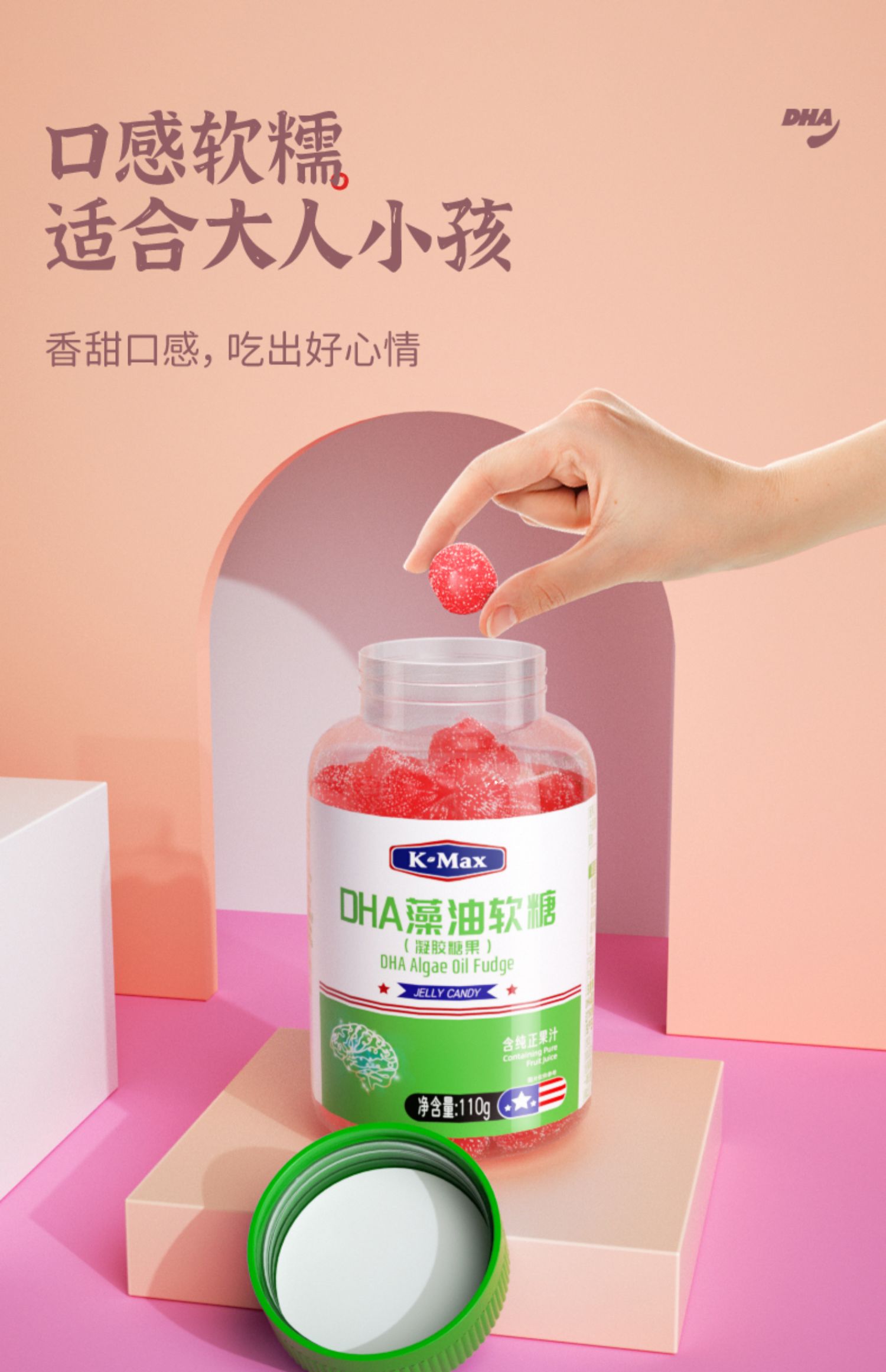 好营养“藻”获取,提取天然植物藻油,添加纯正果汁,口感Q弹无腥味,软硬适中不粘牙,既可以补充DHA还很好吃哦~