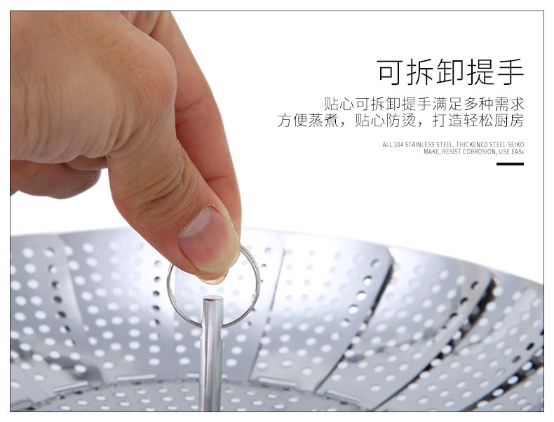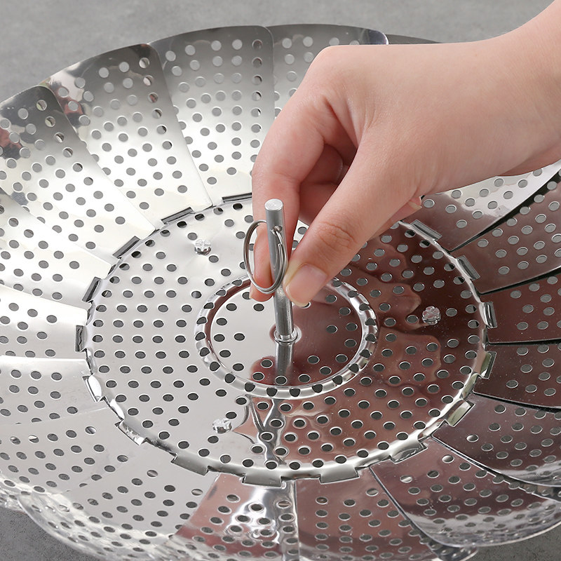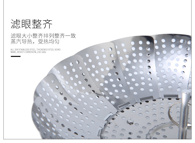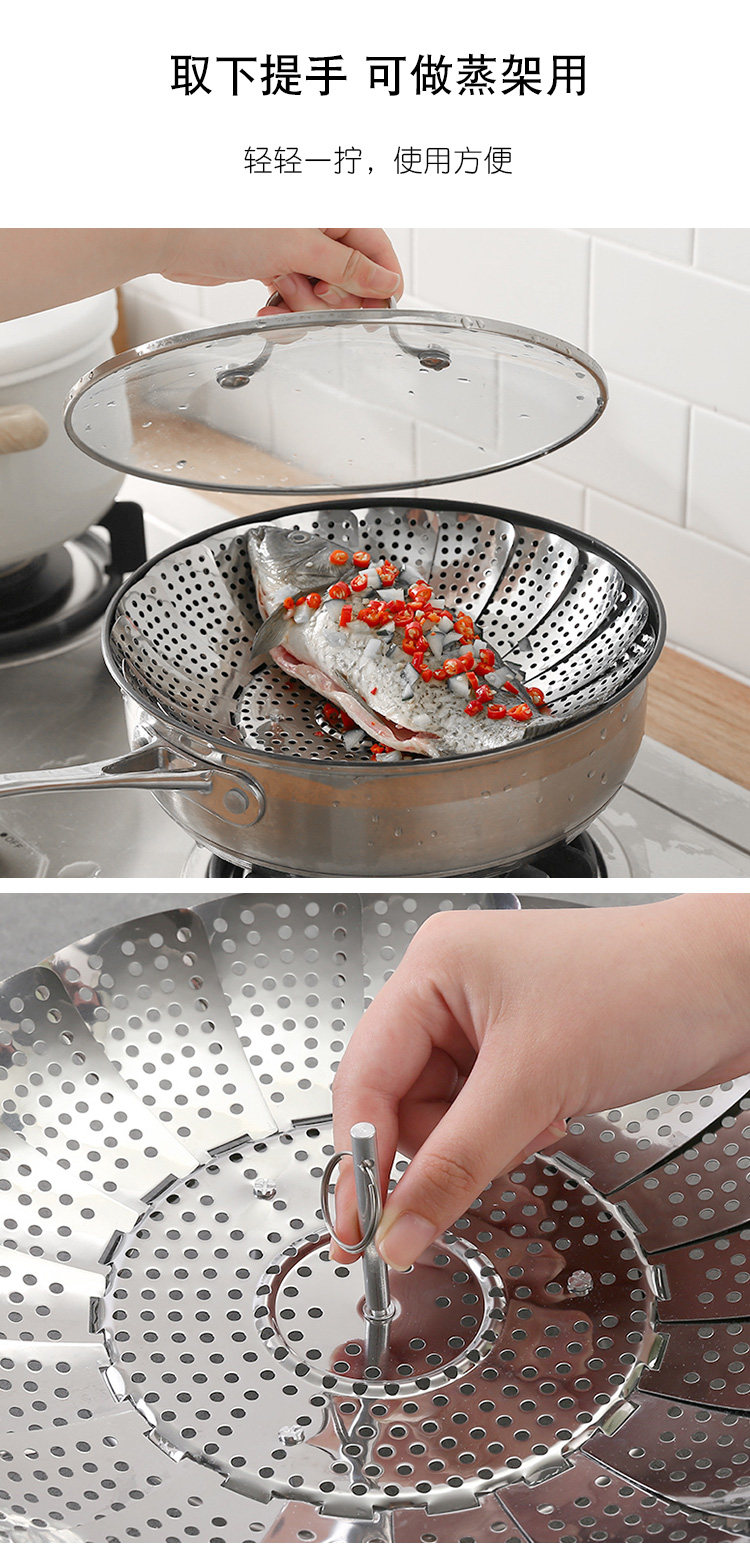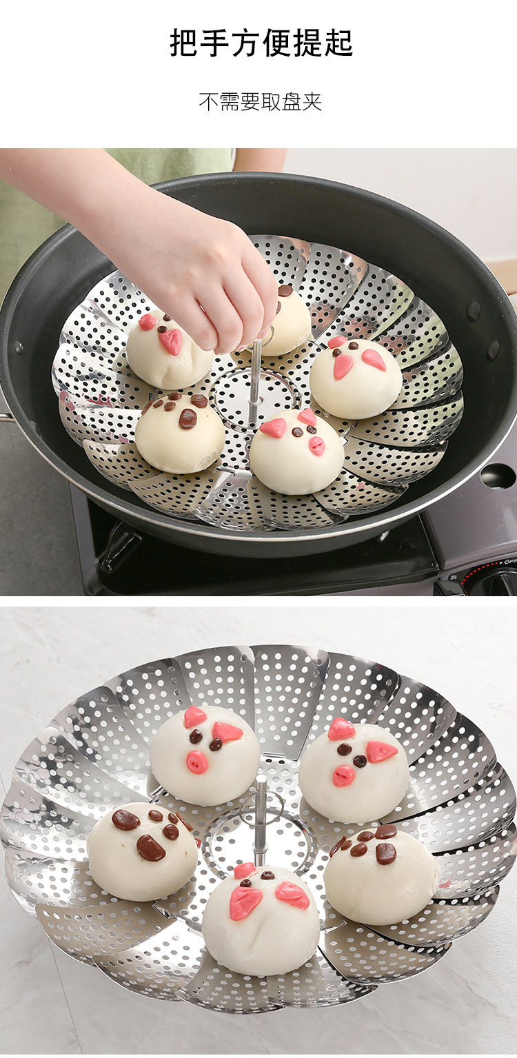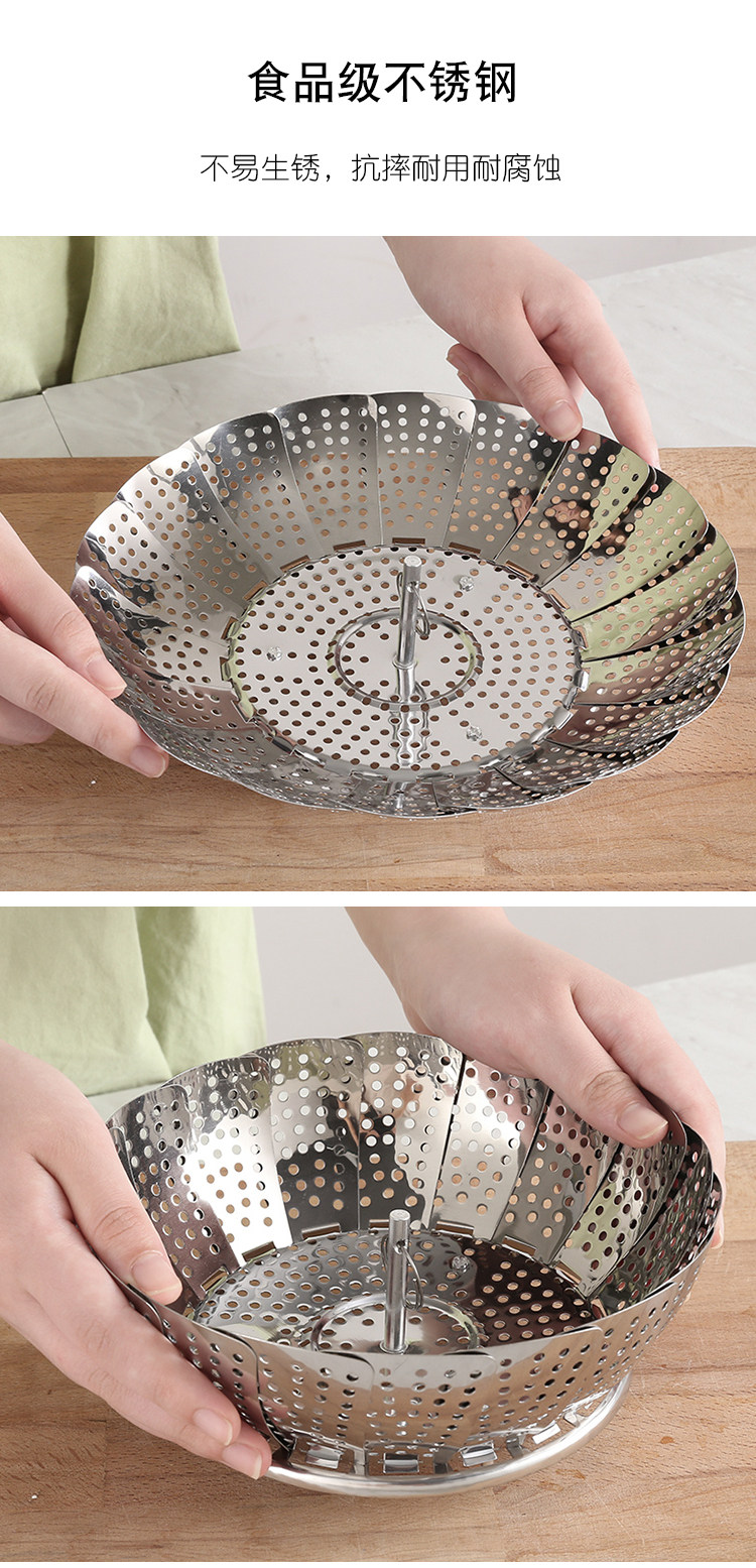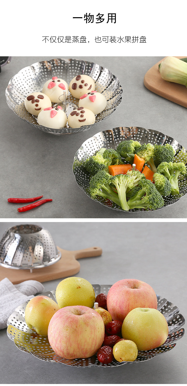 抖yin爆款,多功能蒸架,材质加大加厚,百变折叠伸缩,超强承重力,安全耐用耐高温,蒸汽孔均匀,透气快熟,也可用作水果篮,沥水篮,蒸架,筛网等,清新百变哦~