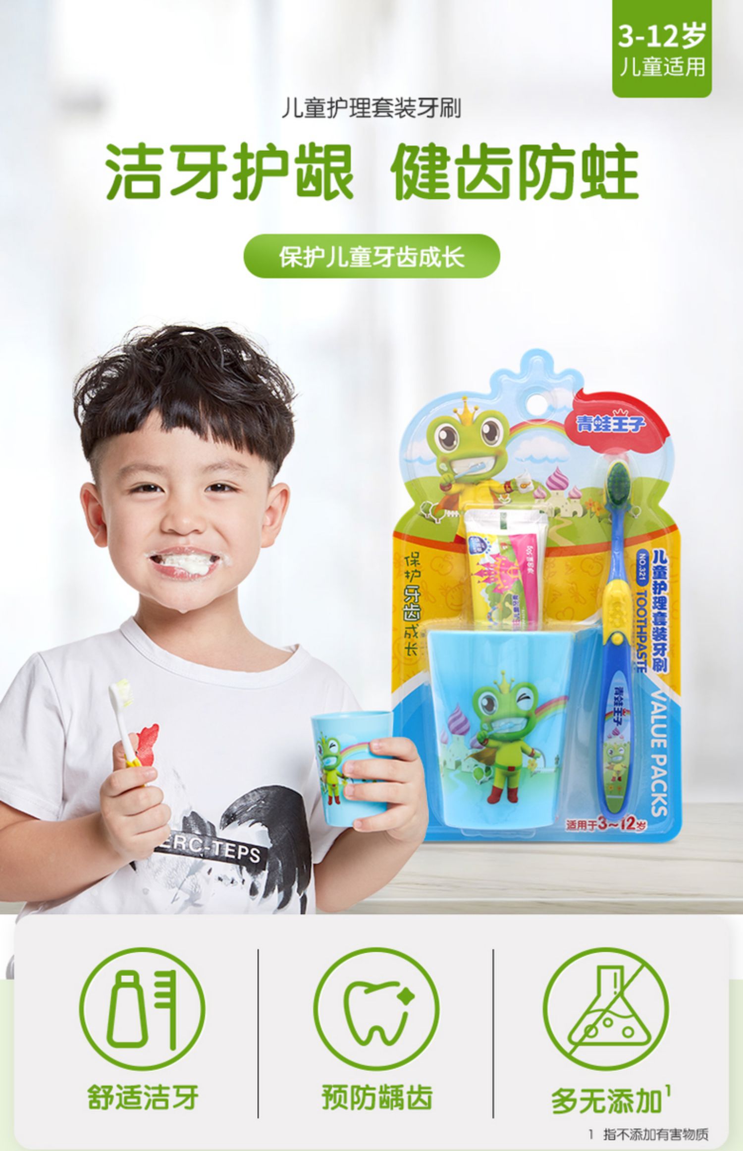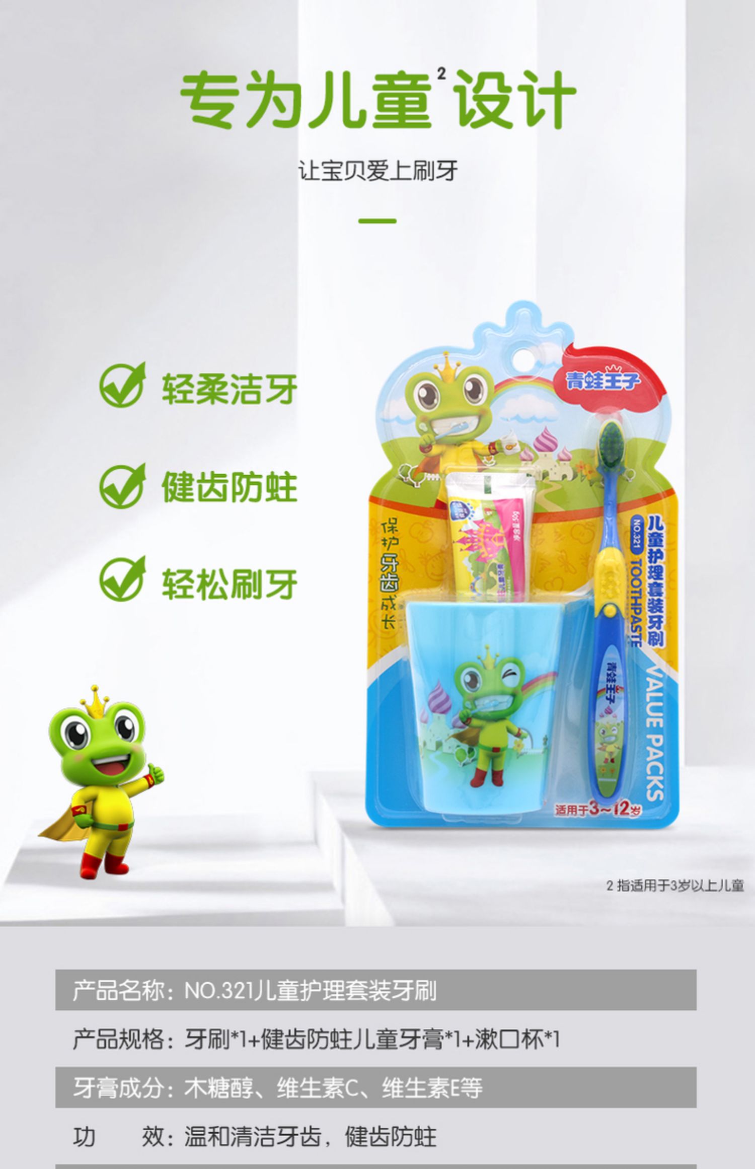 青蛙王子牙杯套装3-12岁防蛀牙刷
