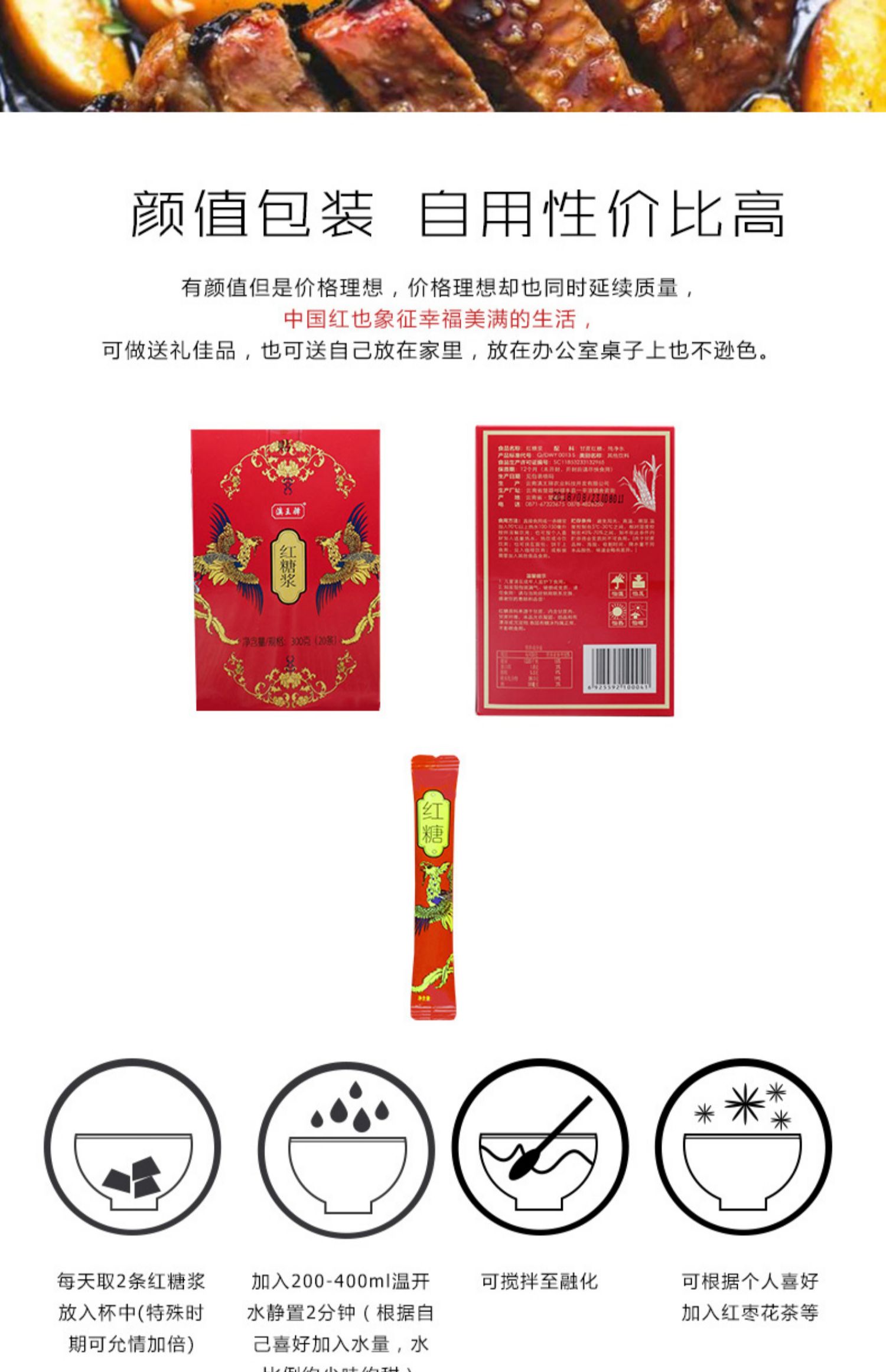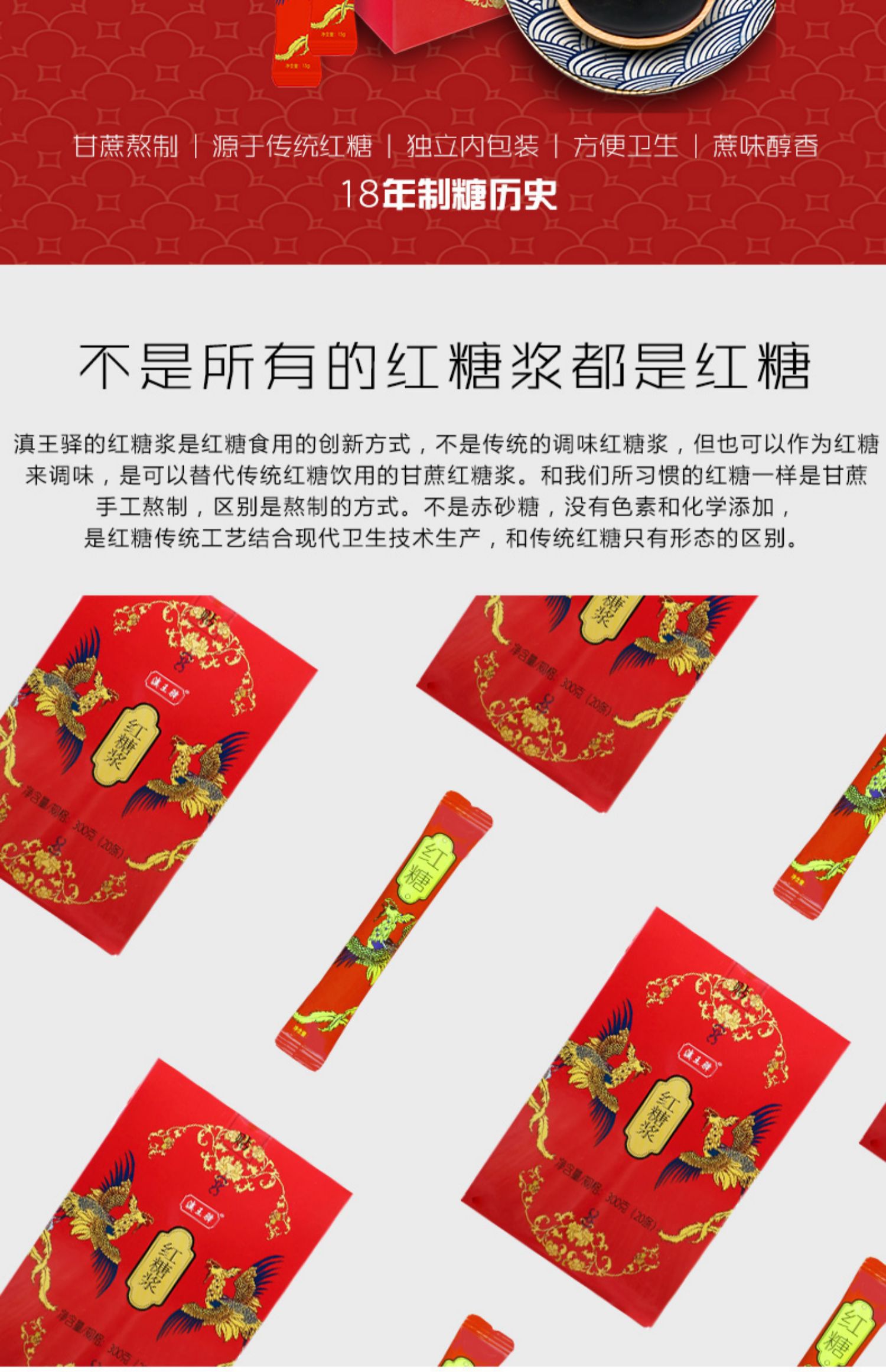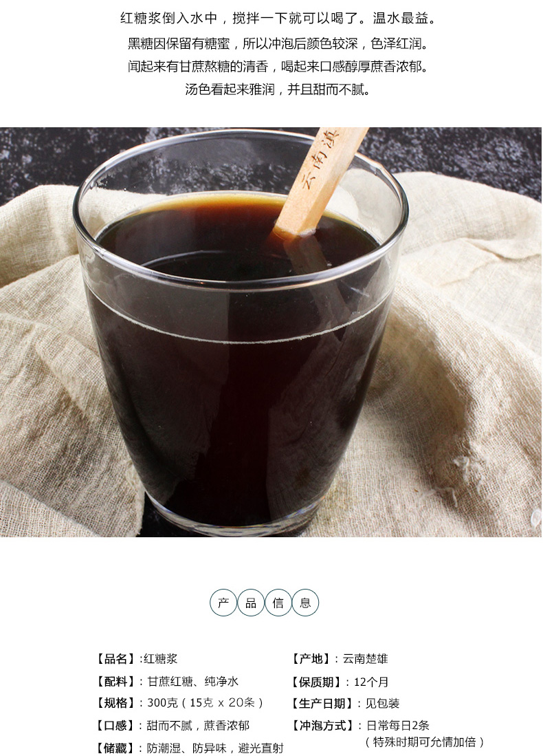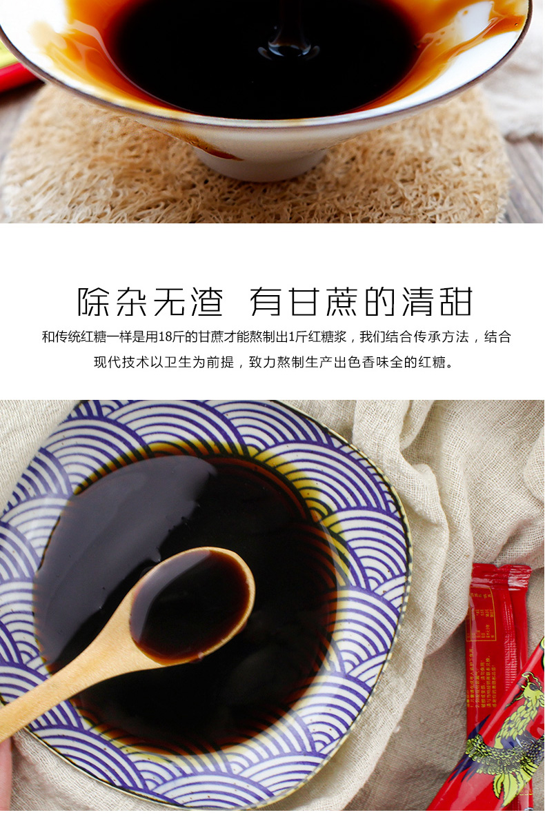 【独立小包装】300g古法黑糖红糖浆,精选云南本地甘蔗熬制,糖浆颜色自然,口感甜而不腻,醇厚浓香,适合办公上班族使用,一次一条,方便卫生!