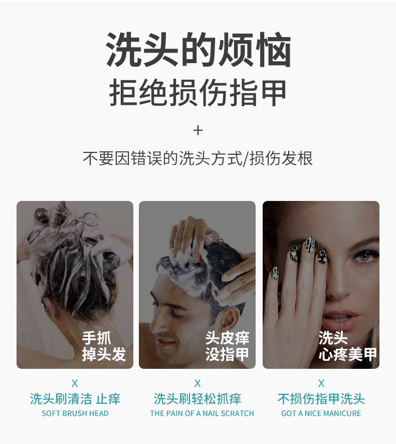 【抖音爆款】懒人洗头刷按摩神器,头部按摩器经络刷,洗发按摩梳,真硅胶梳齿,保护头皮,软硬适中,手夹设计握感舒服,让洗发成为一种享受