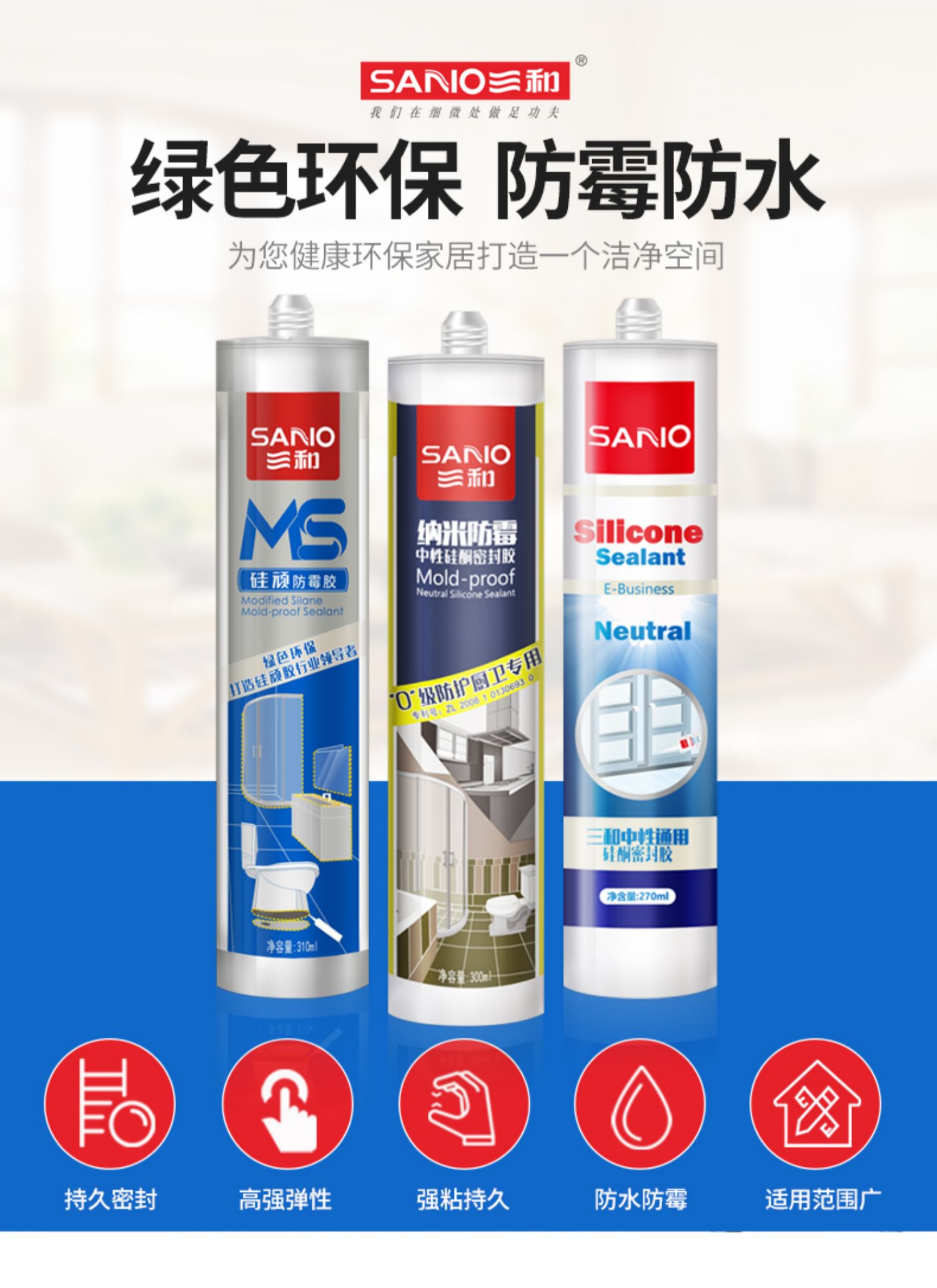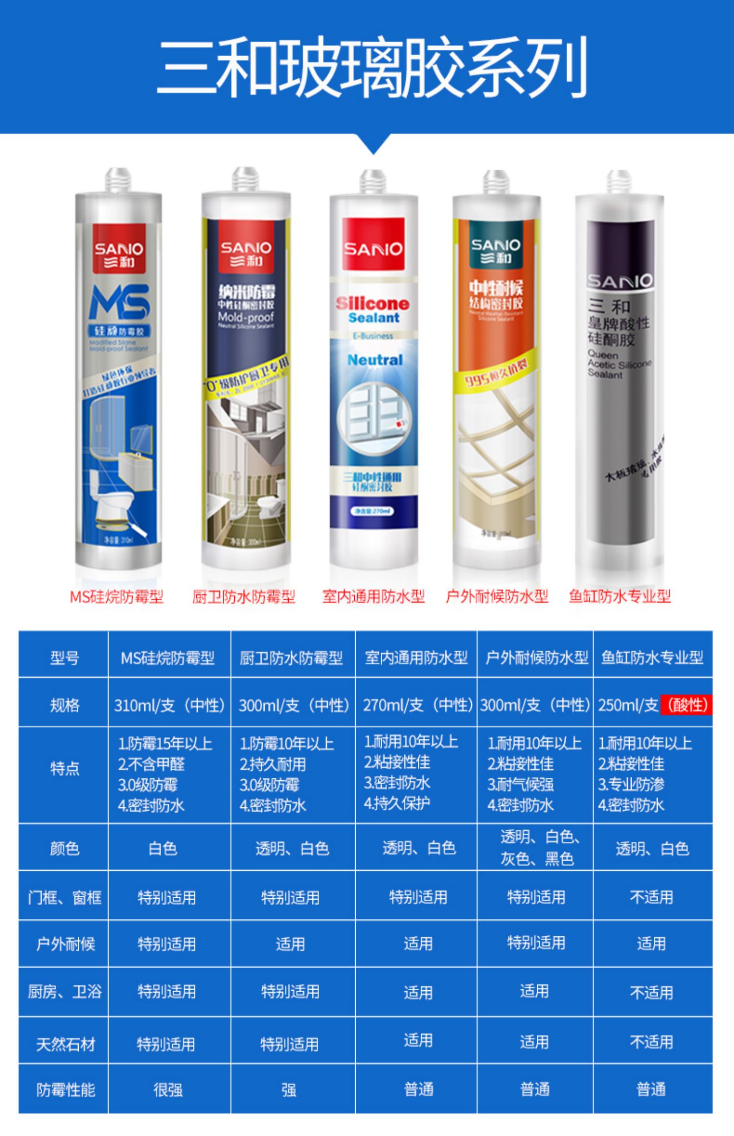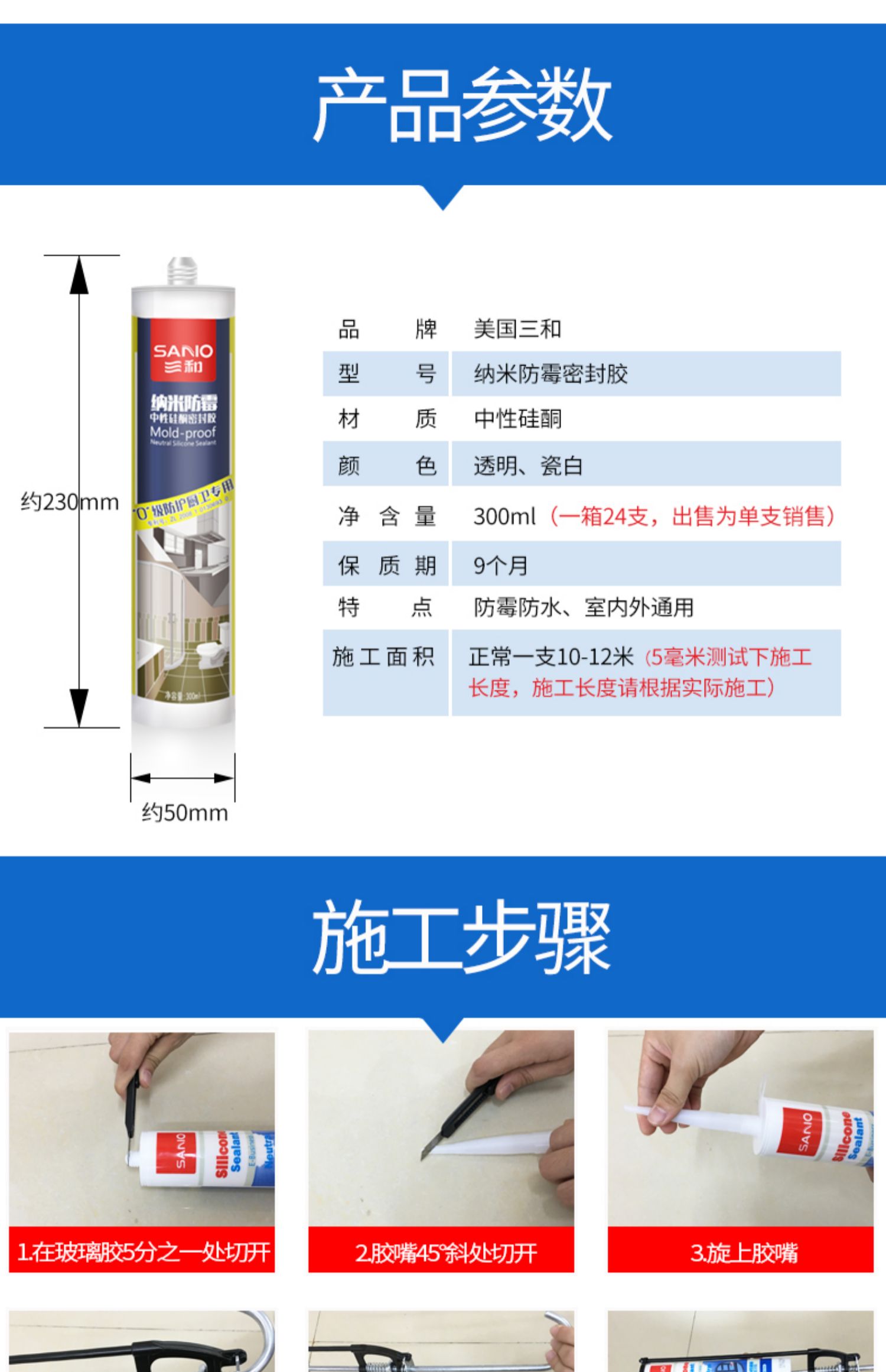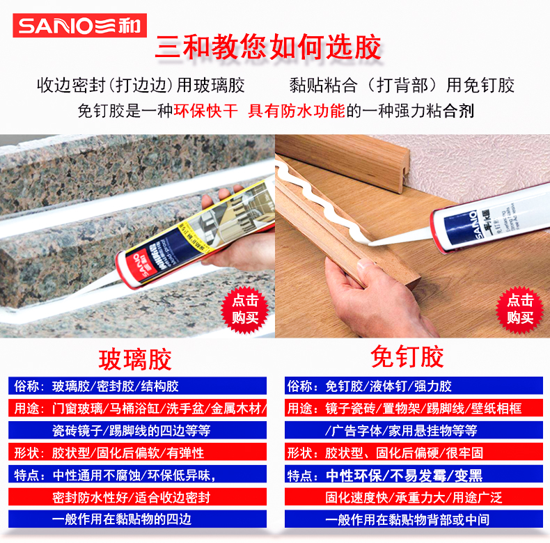 三和玻璃胶防水强力免钉胶