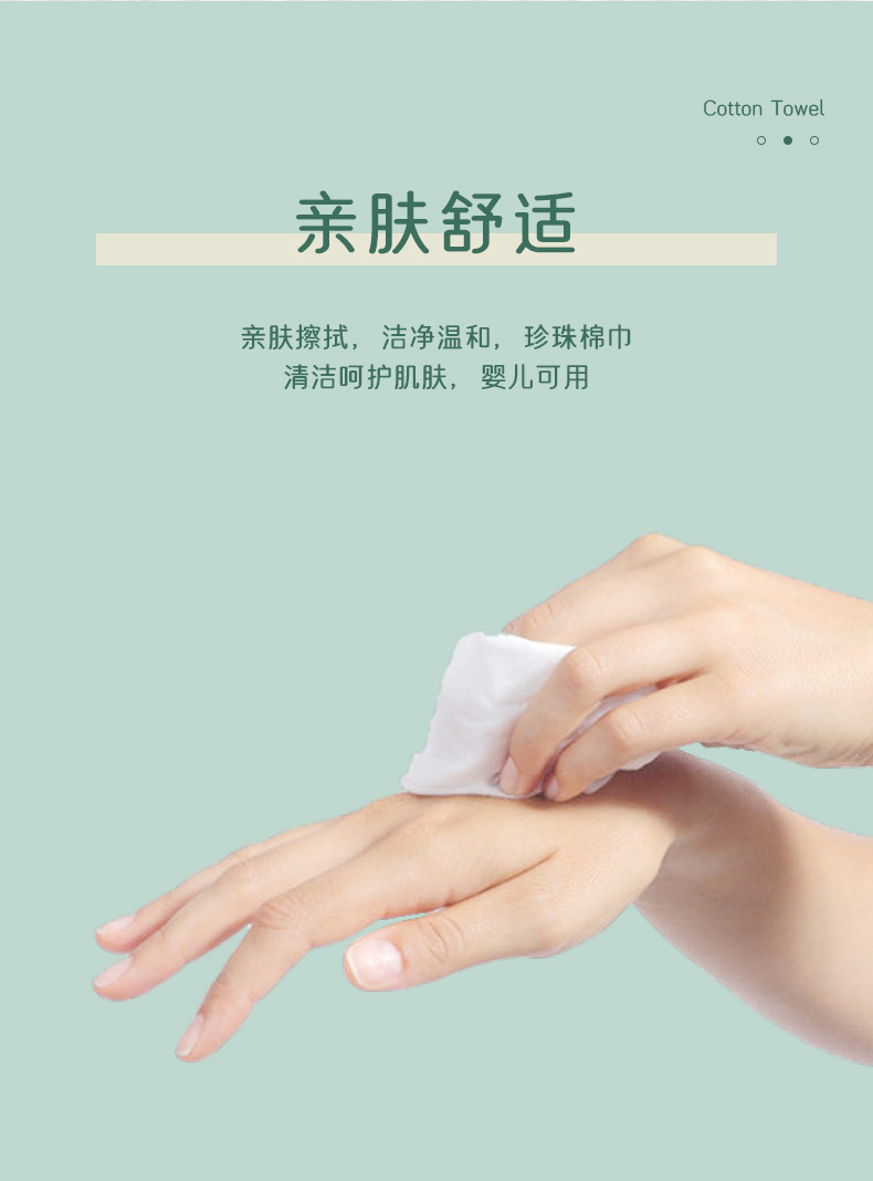 【纯棉材质、亲肤舒适】采用珍珠纹工艺,精选优质棉水刺无纺布,亲肤吸水,柔韧耐用不掉絮,干湿两用,享受品质为娇嫩肌肤而生~仙女速购!