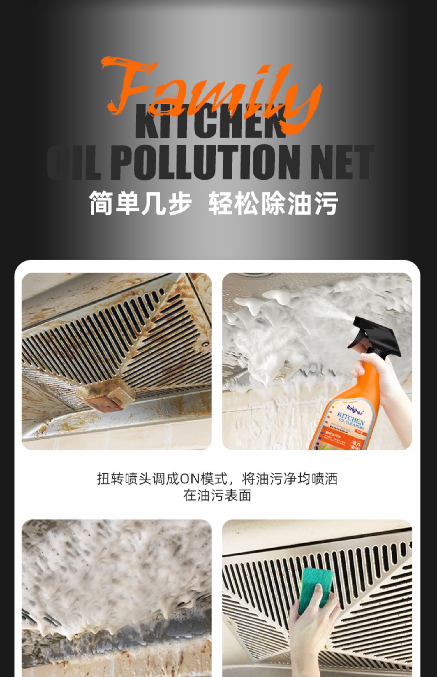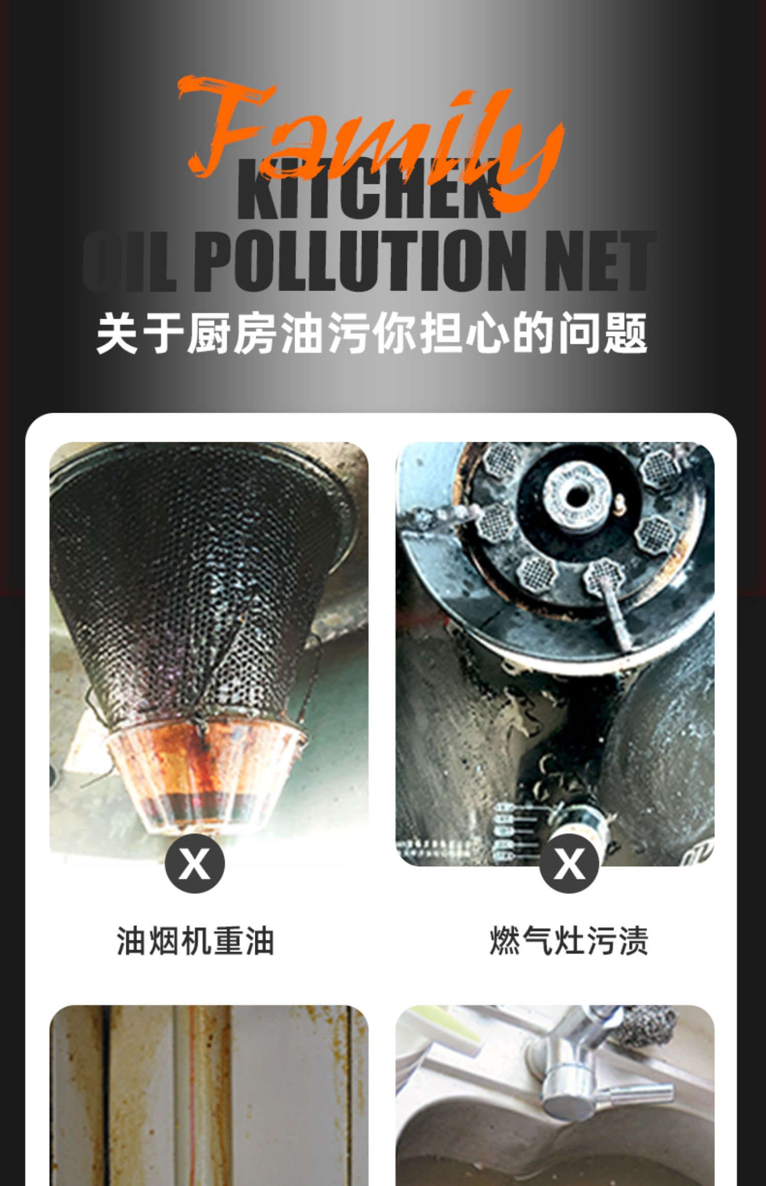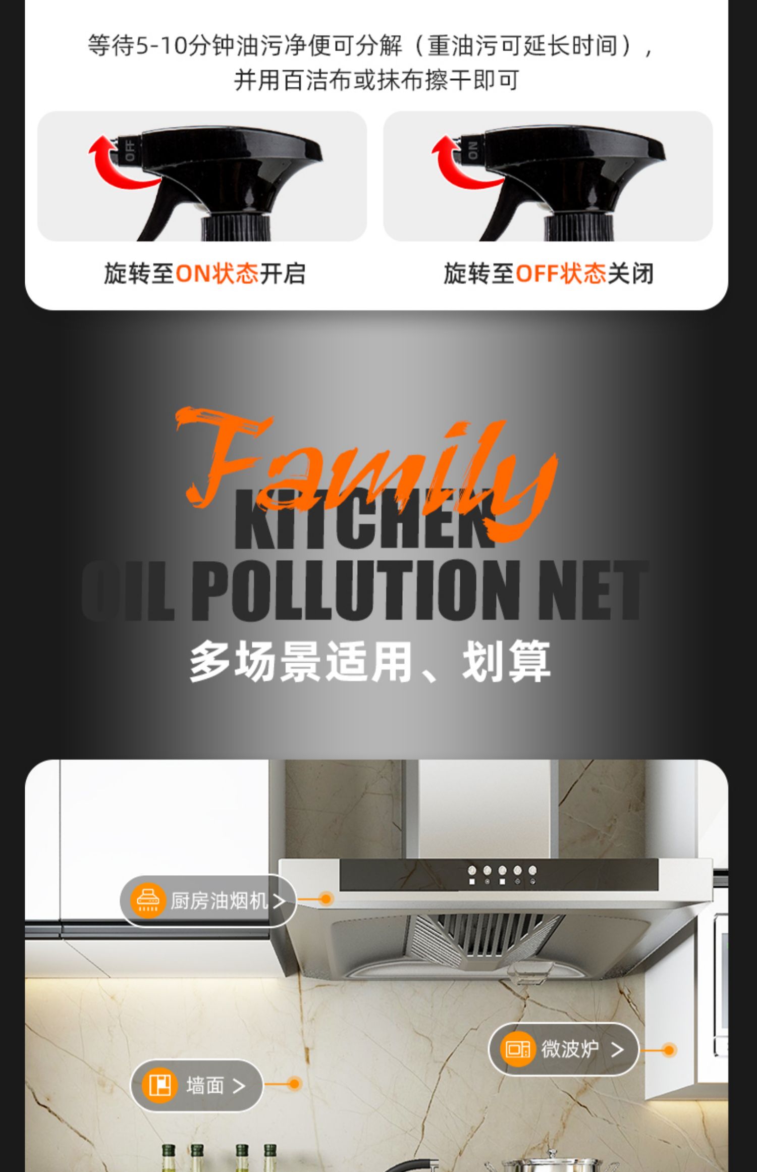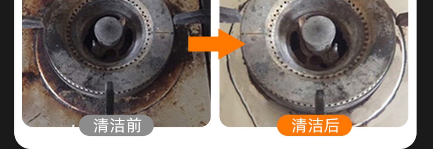 污能力超强,喷上去之后擦一下就干净了,像新的一样!油烟机、锅盖、燃气灶都可以清洁