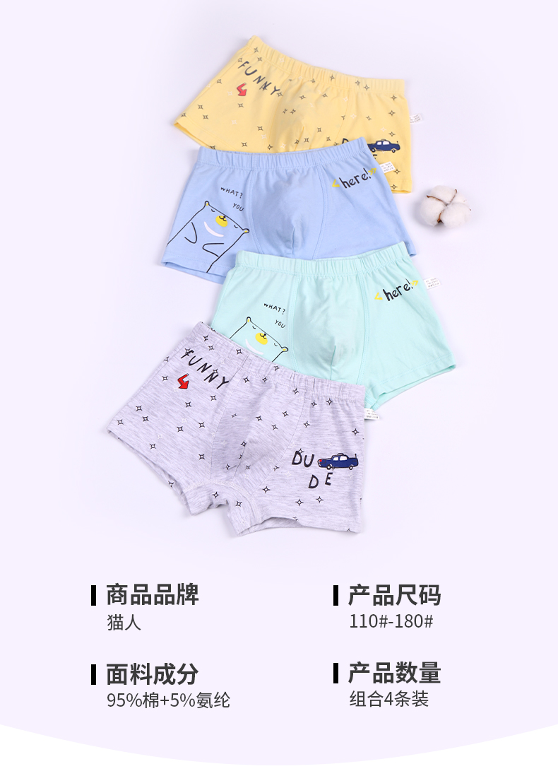 儿童四角男童纯棉100%中大童12内裤