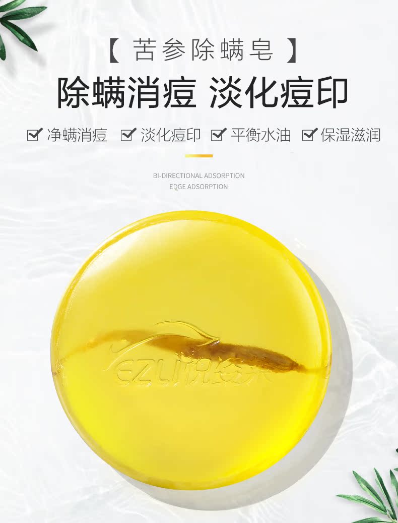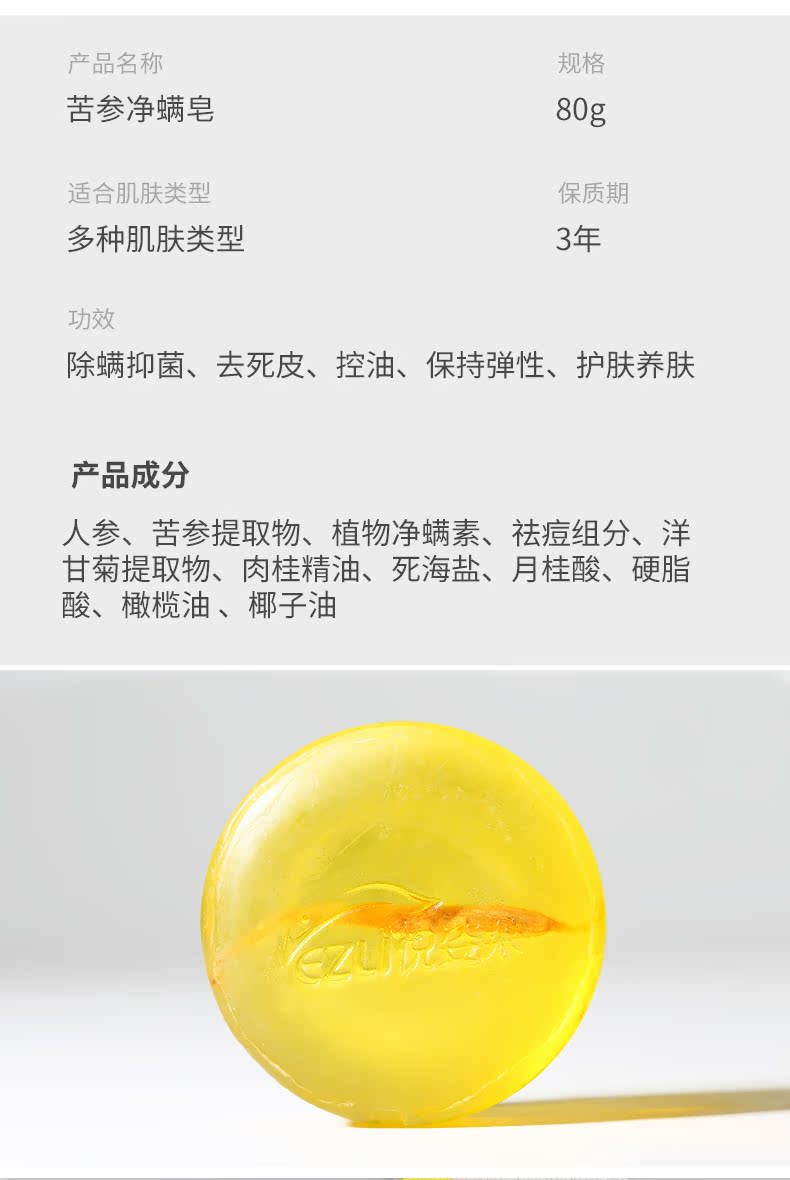 19.9拍一发三!【悦姿莱】苦参植物萃取,洁净皮肤,抑制痘痘反复生长,给予你想要的滑嫩肌肤。比半X花田用料足,同厂直供,质量保证!体验更好!除螨率达到99.27%!不含硫磺粉!一皂多用,绽放肌肤之美!