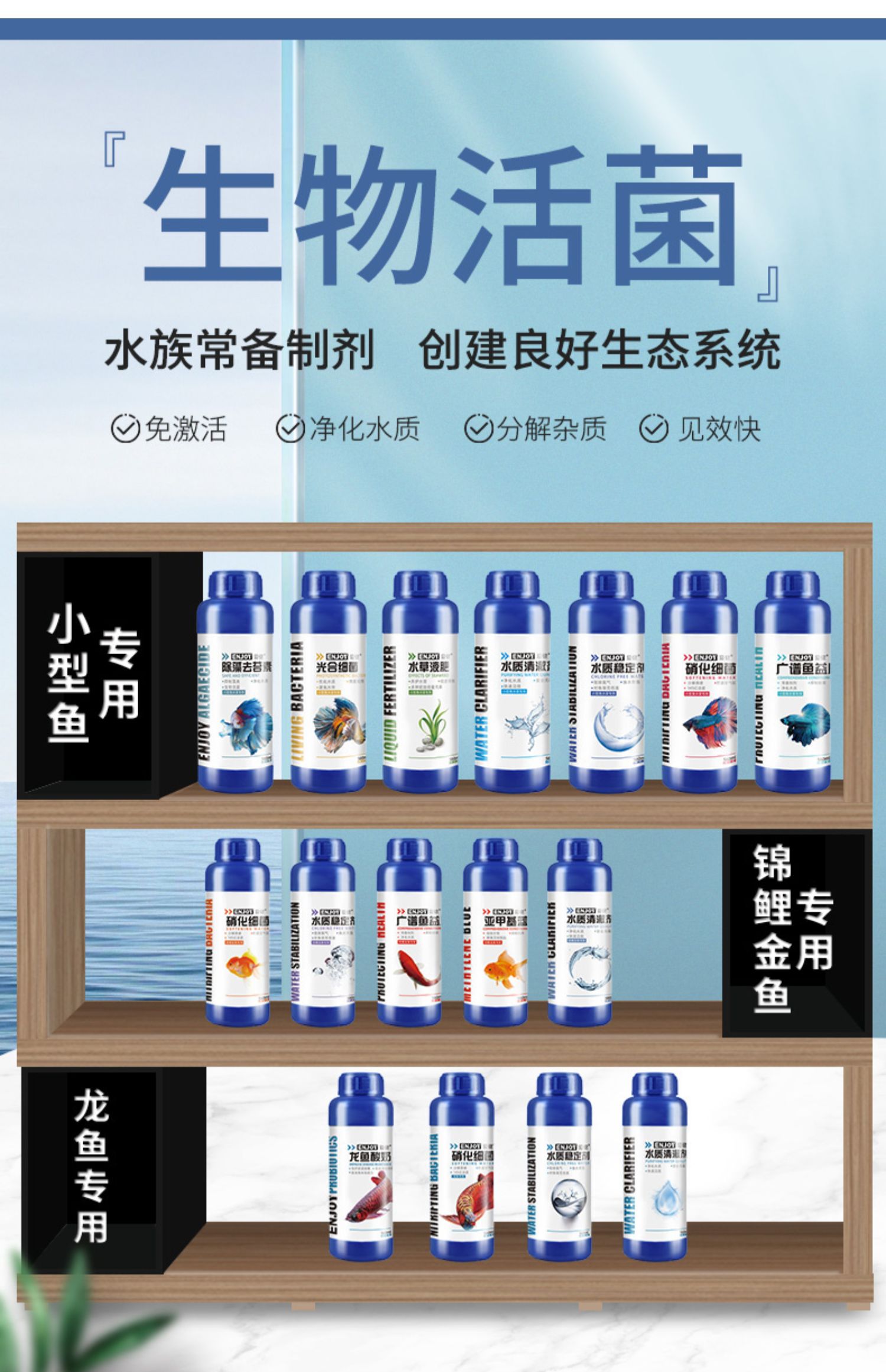 硝化细菌鱼缸用水族净水剂,分解粪便,净化水质,鲜活菌群无臭味,安全无毒不伤鱼。