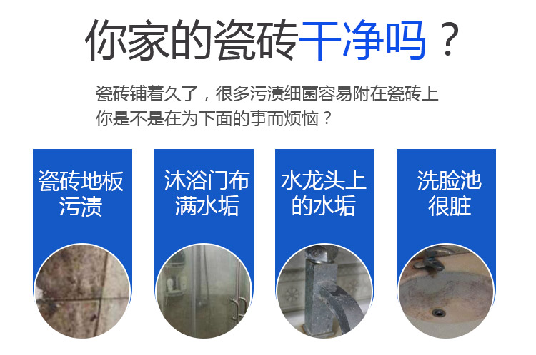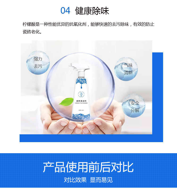 【买二送一!超值!超值!】深层去污高效更安心!配方新升级,轻轻一喷,有效的去除地砖、金属表面、玻璃、墙砖顽固污渍!光洁如新!生物分解,不伤瓷砖,防止瓷砖老化!年底做卫生