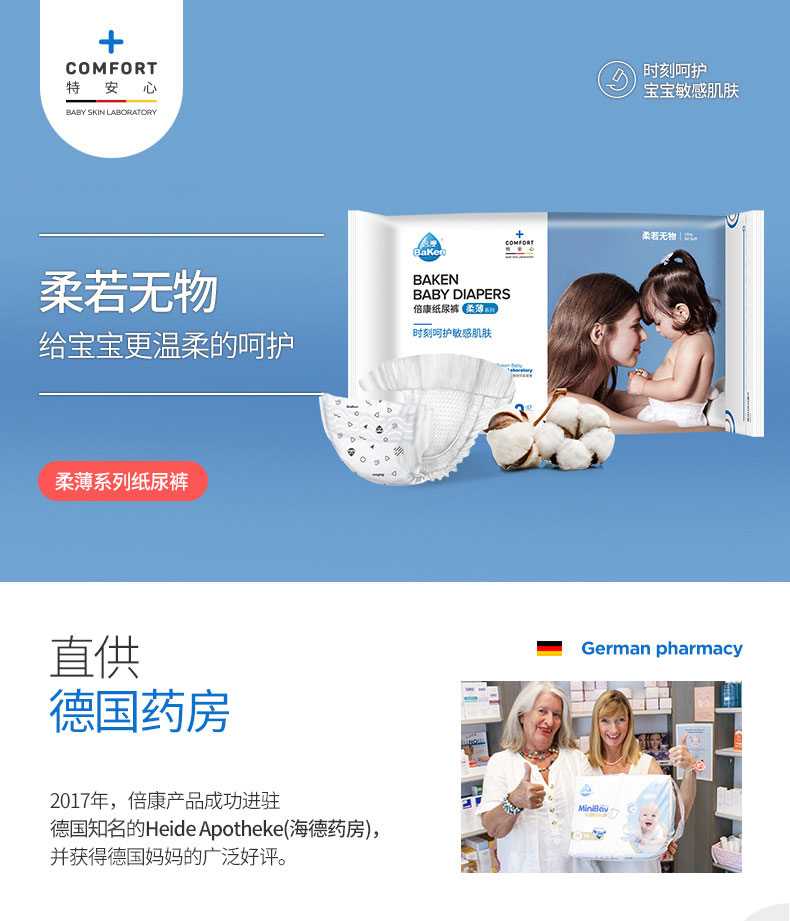【倍康】柔薄纸尿裤SML码可选,超高性价比,不止于薄,纯净亲肤,日夜都好用,轻薄透气,不捂小屁屁,更大吸量,一整晚安睡。【赠运费险】