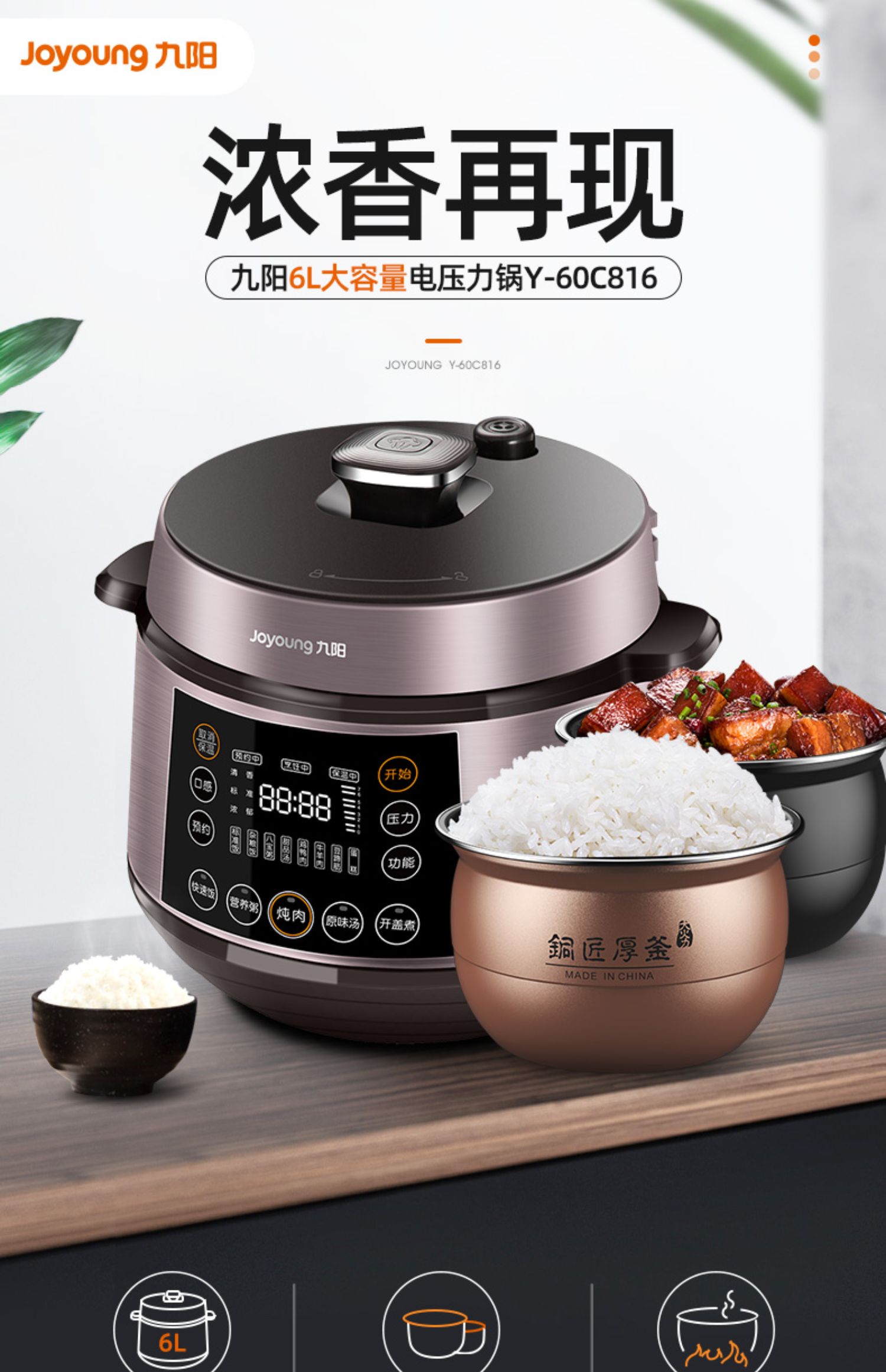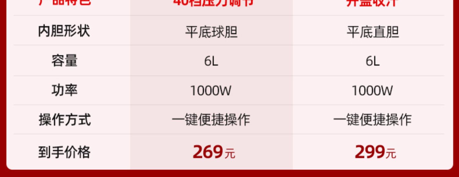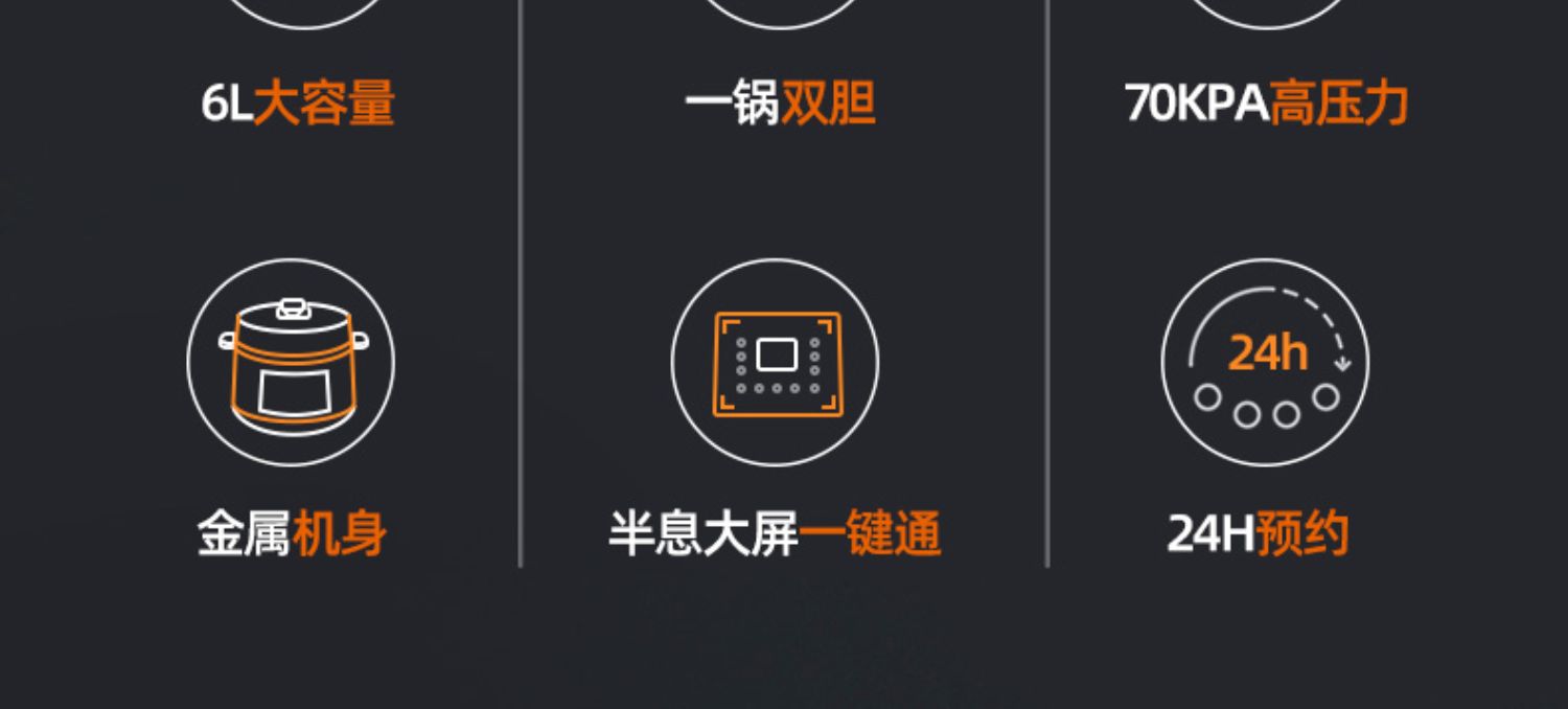 金属机身,球型厚釜,一锅双胆,双重享受,半息大屏一键通,反向排气更安全不烫手,24小时预约,八段压力智能调节,一机两用,满足多重需求!【赠运费险】
