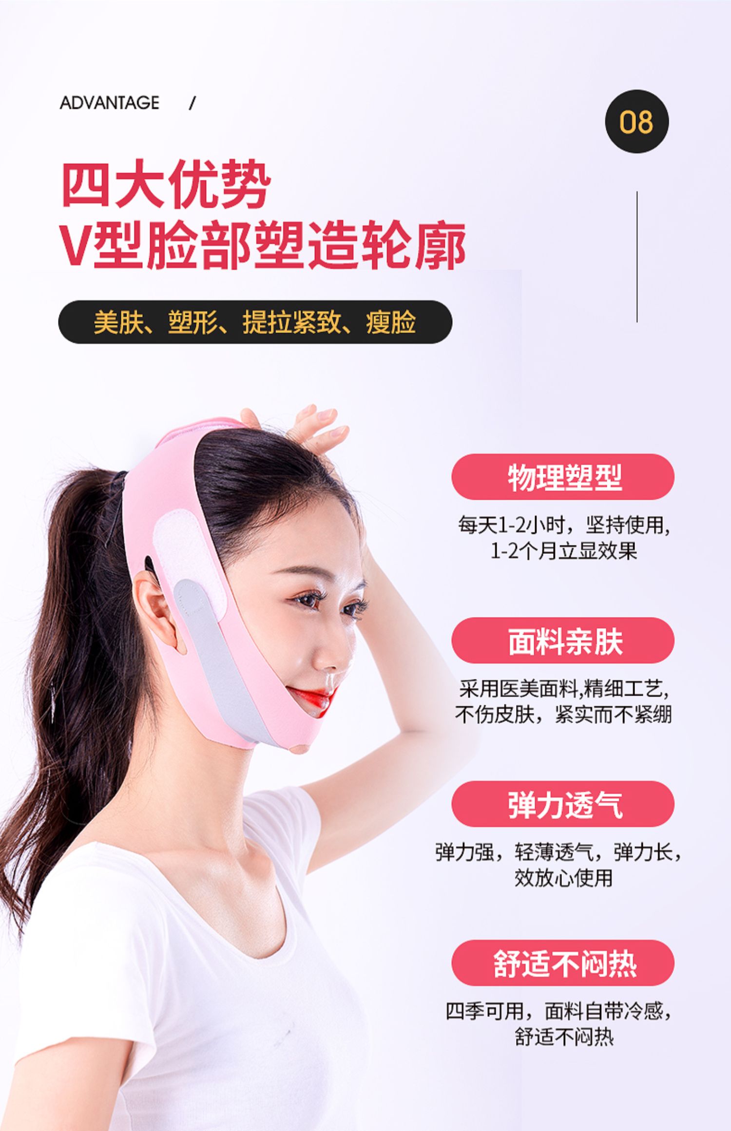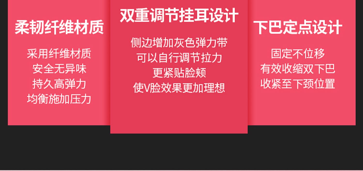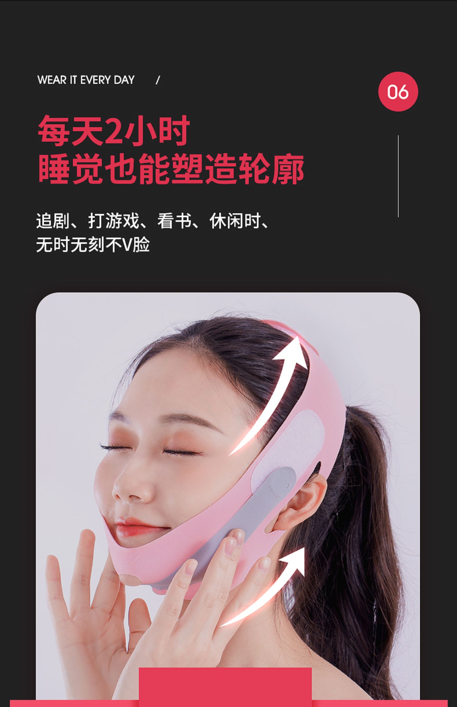 针对各种脸型,瘦脸实力派,360°全方位提拉,告别双下巴,打造小v脸,每天佩戴2小时,轻松塑造V脸,比你脸小的人都在用,还不赶紧冲呀!